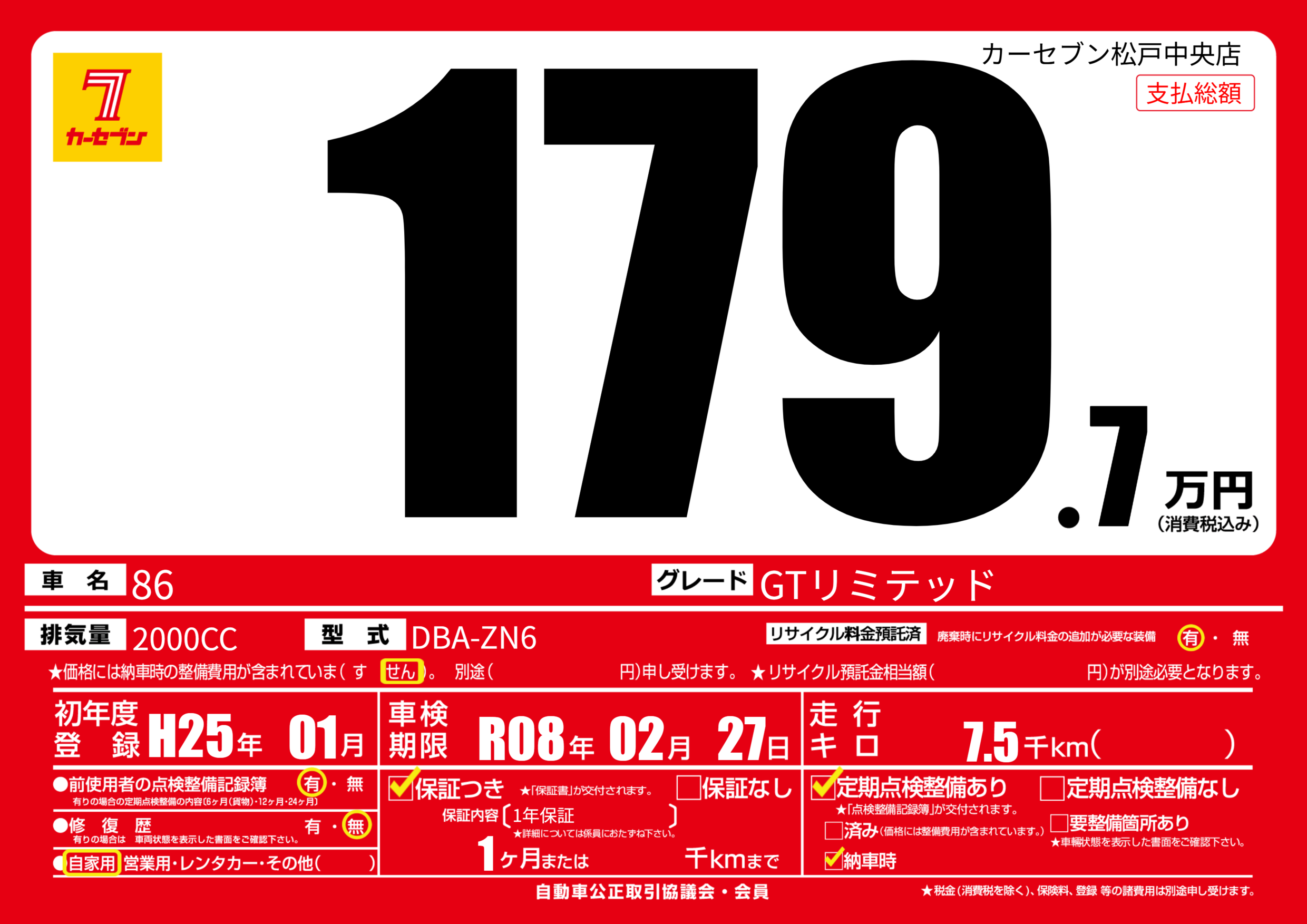 | 定期点検整備 | 定期点検整備あり 納車時あり | ||