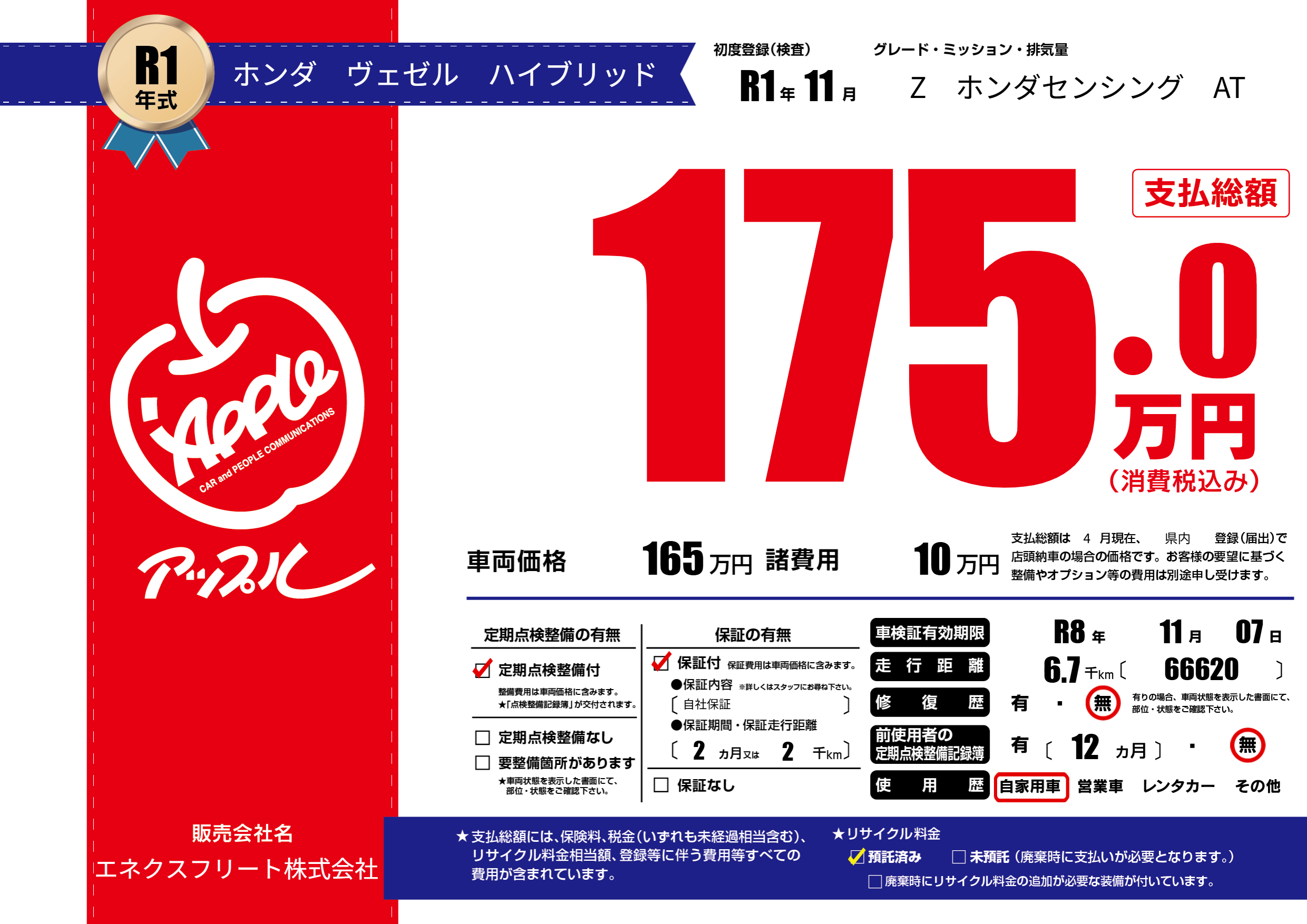 なし | 車検制限 | R8年11月07月 |