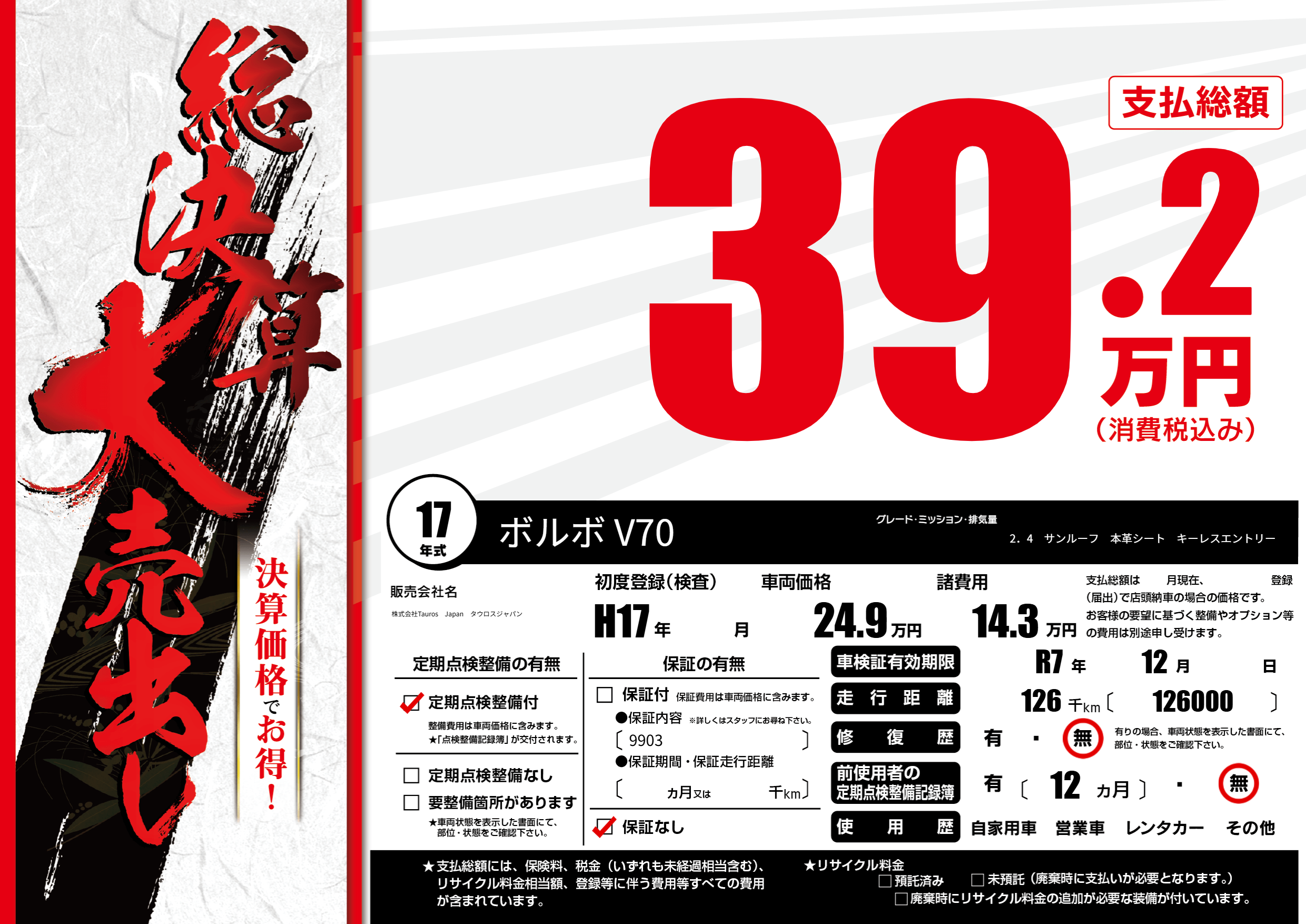 | 車名 | ボルボ V70 | グレード ミッション 排気量 |