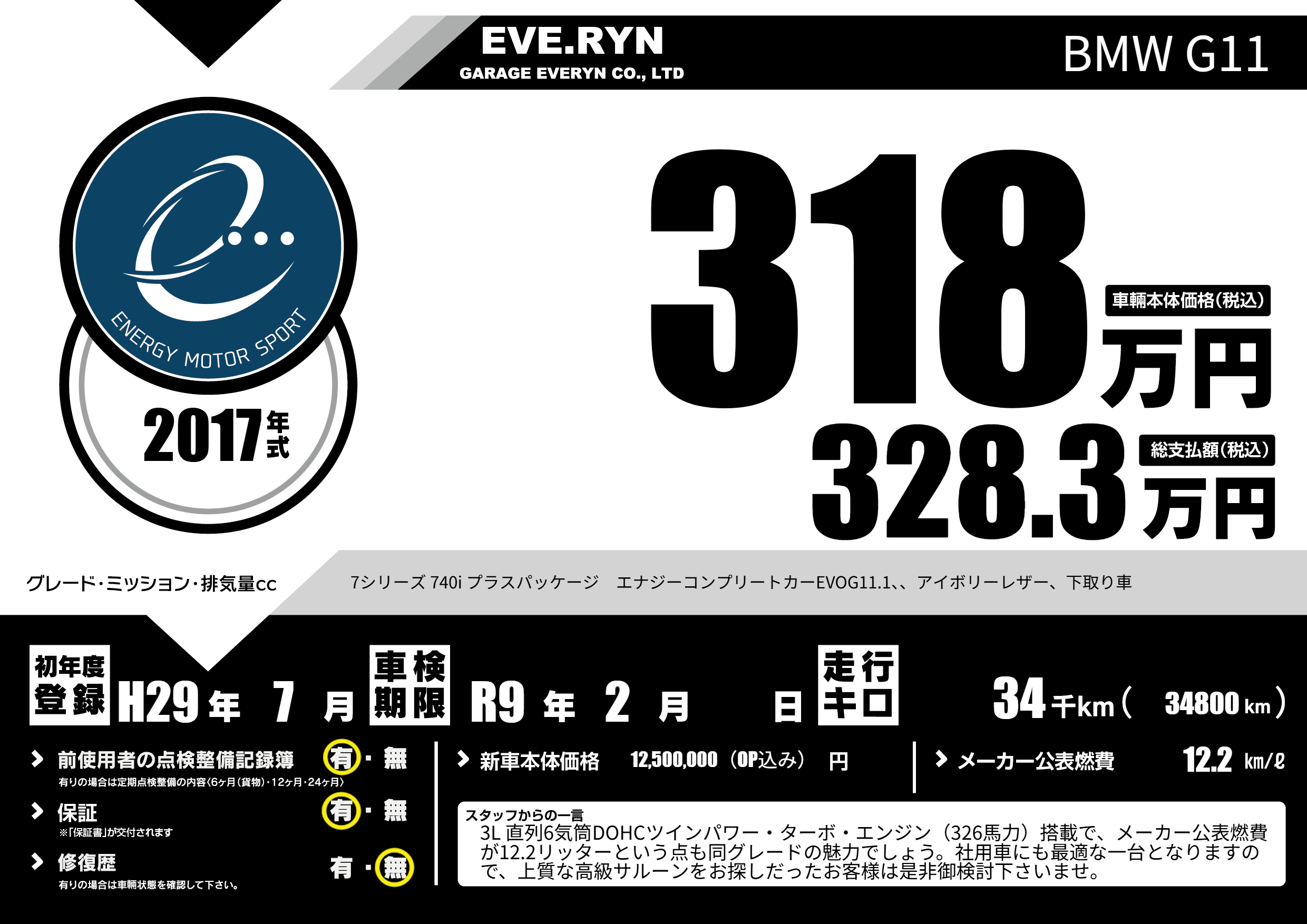 | 車名 | BMW G11 | グレード ミッション 排気量 |