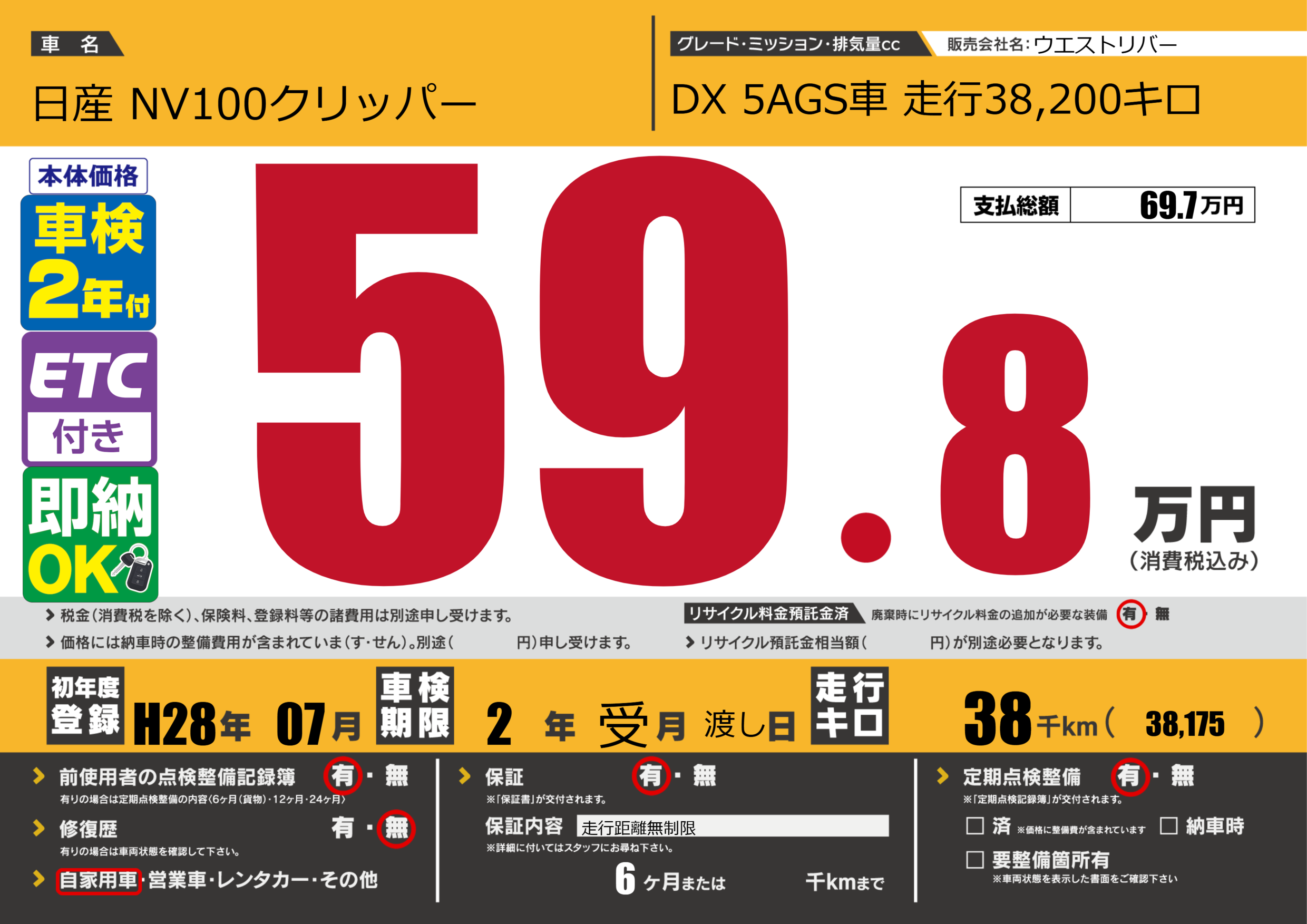なし | 車検制限 | 2年受月渡し月 |