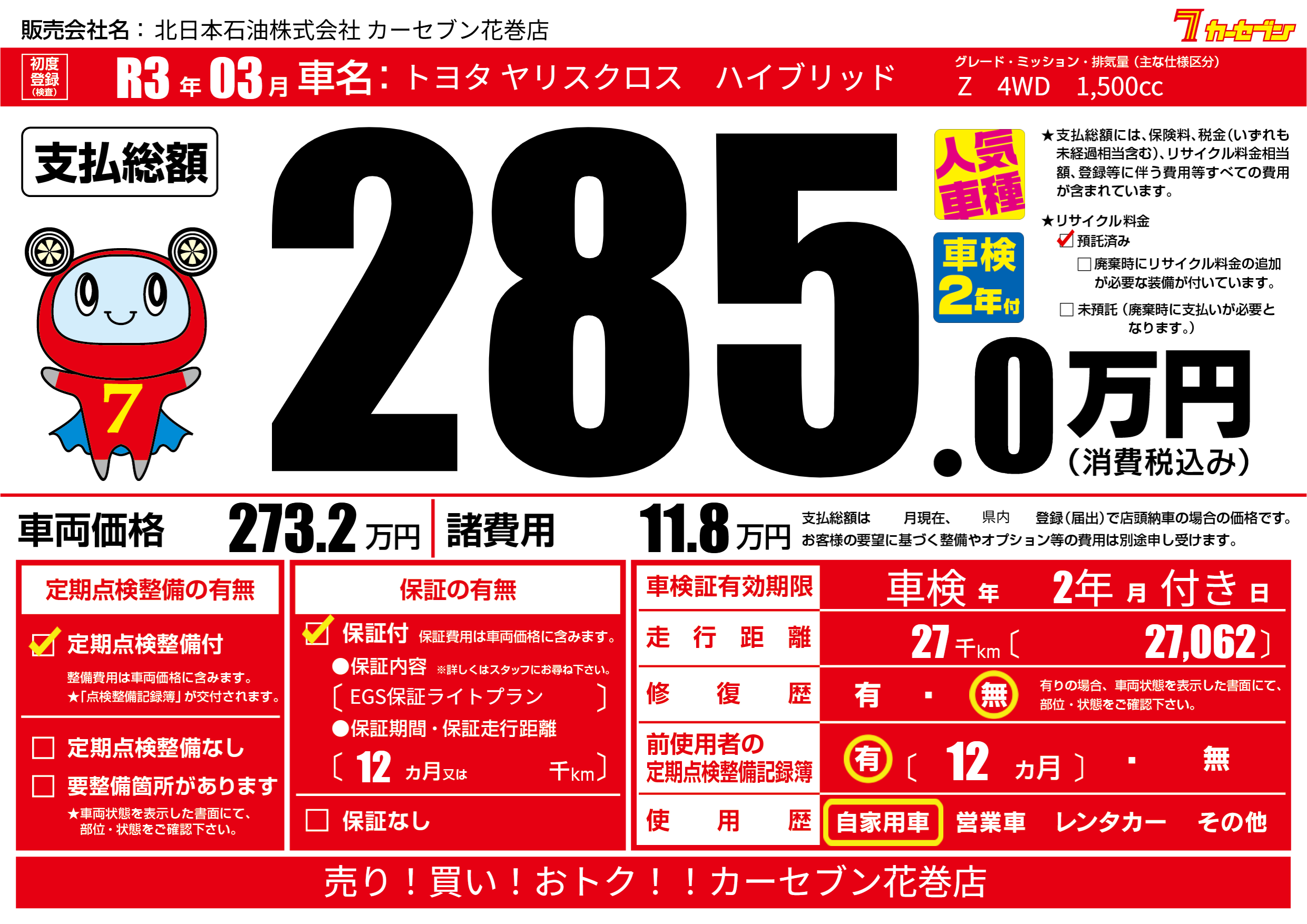 | 走行キロ | 2.7万km | ||