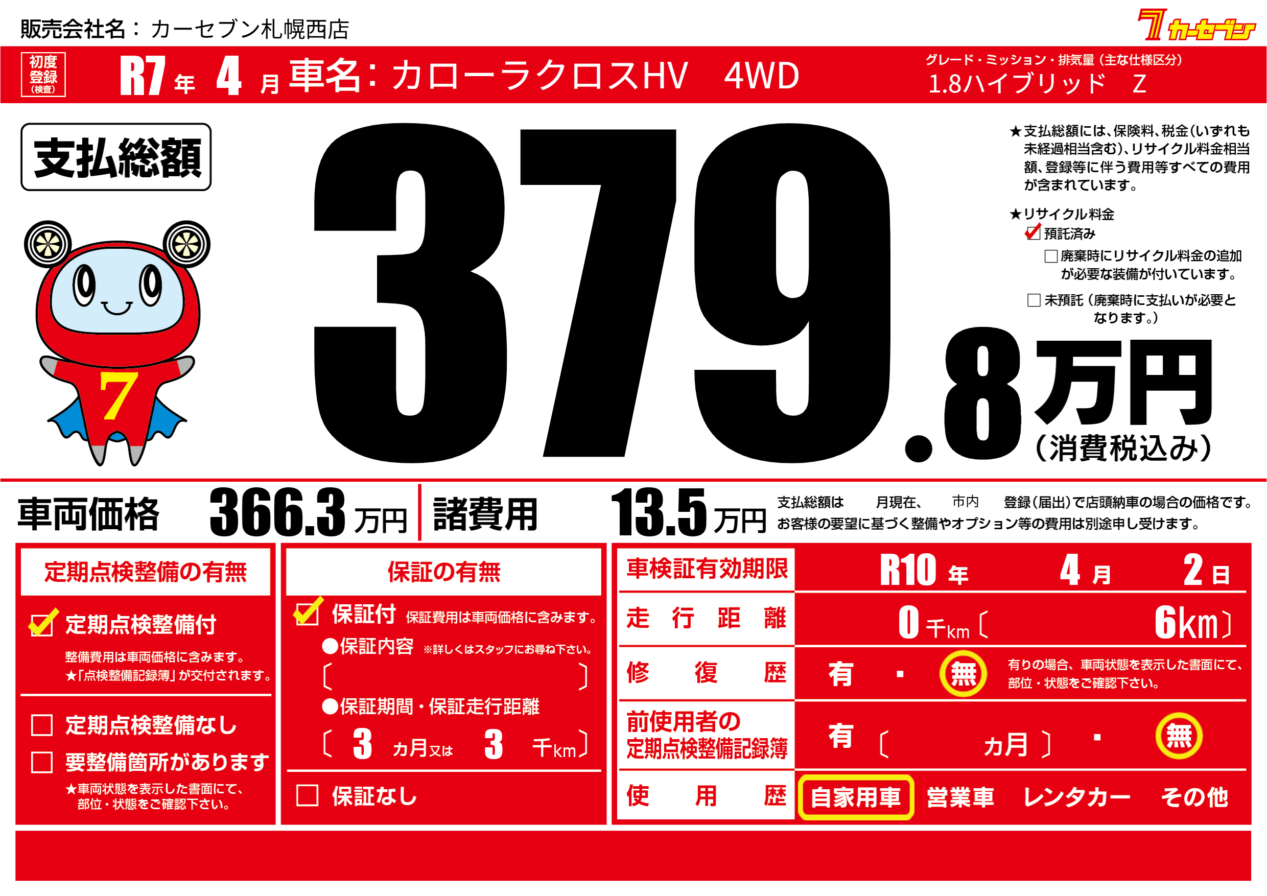 | 初年度登録 | R7年4月 | ||