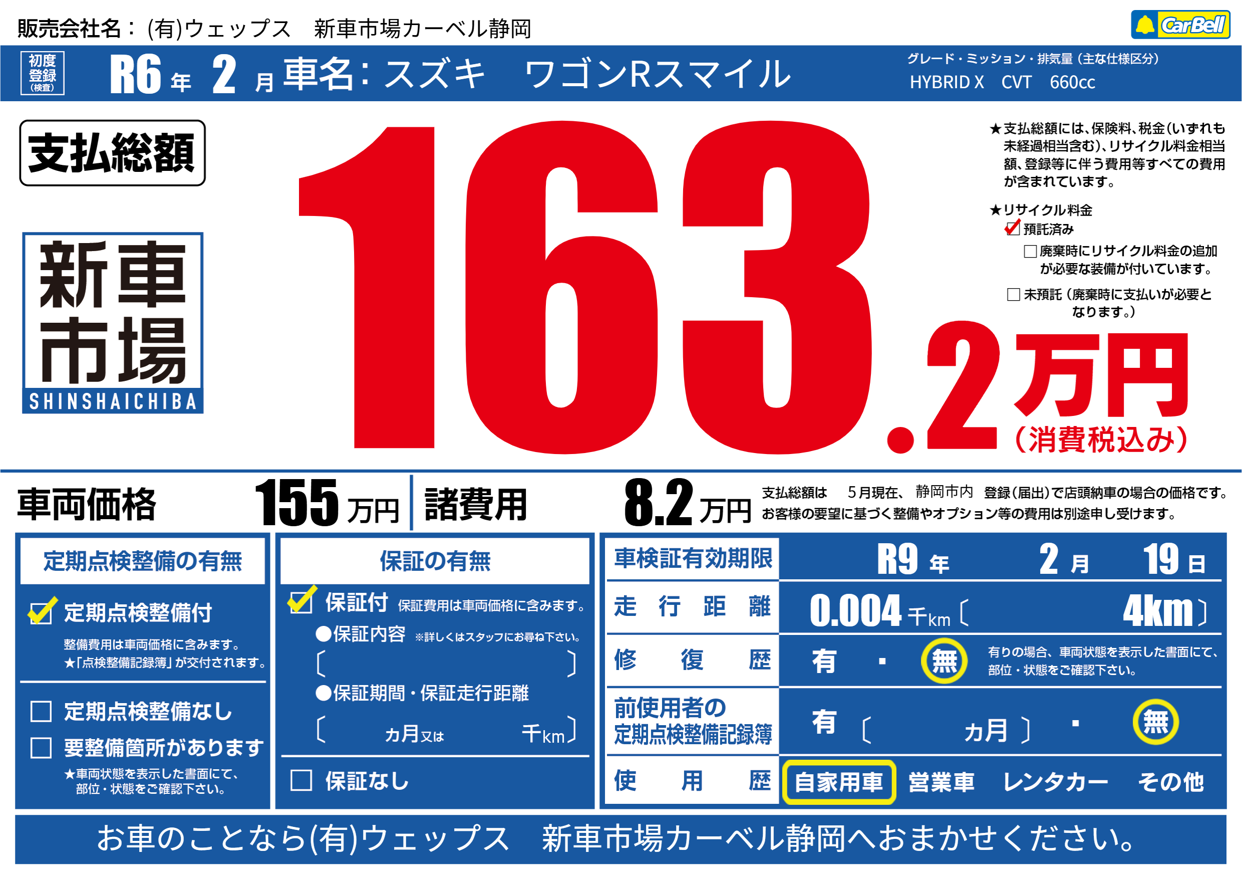 | 車検制限 | R9年 2月 19日 | ||