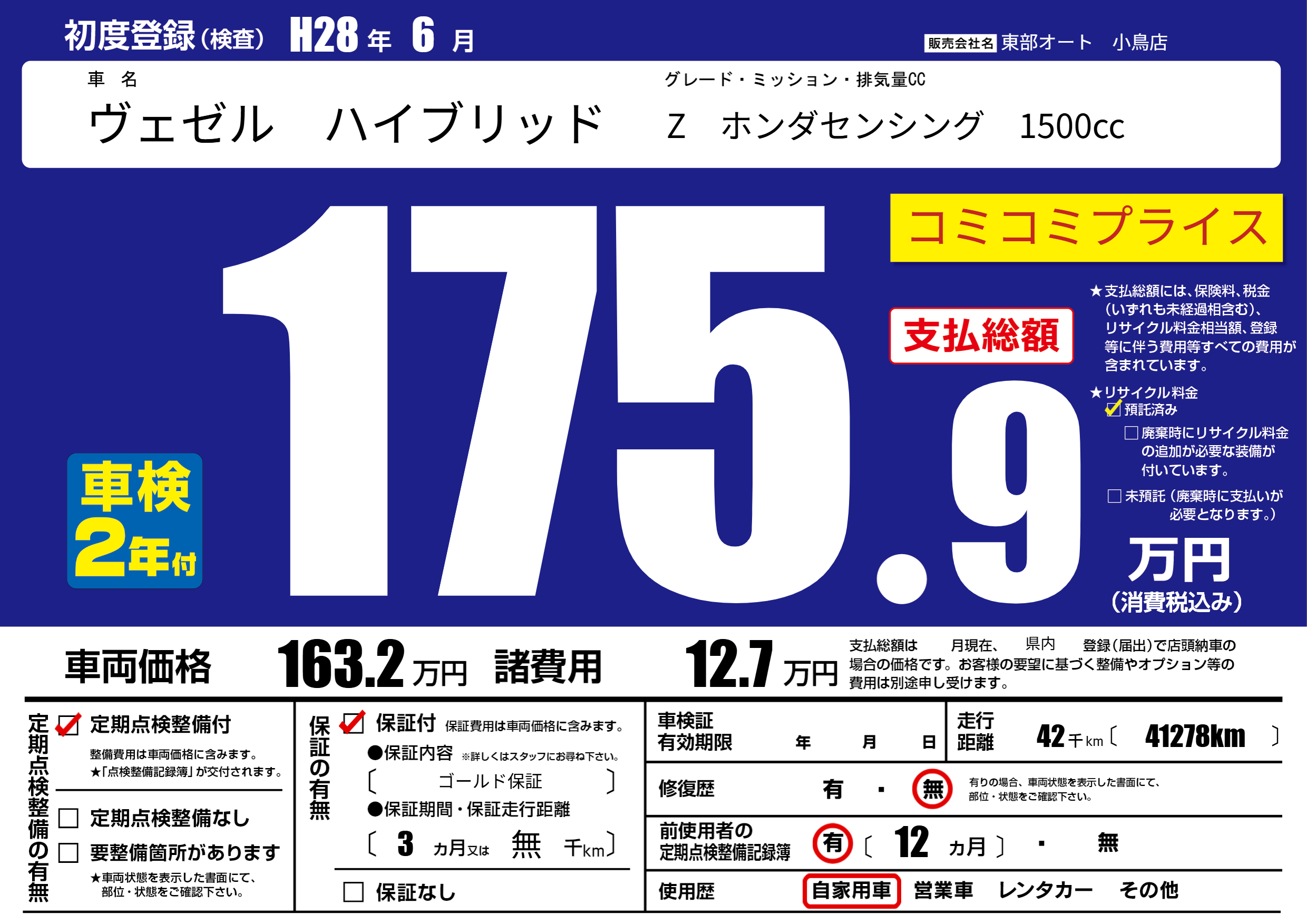 | 初年度登録 | H28年6月 | ||