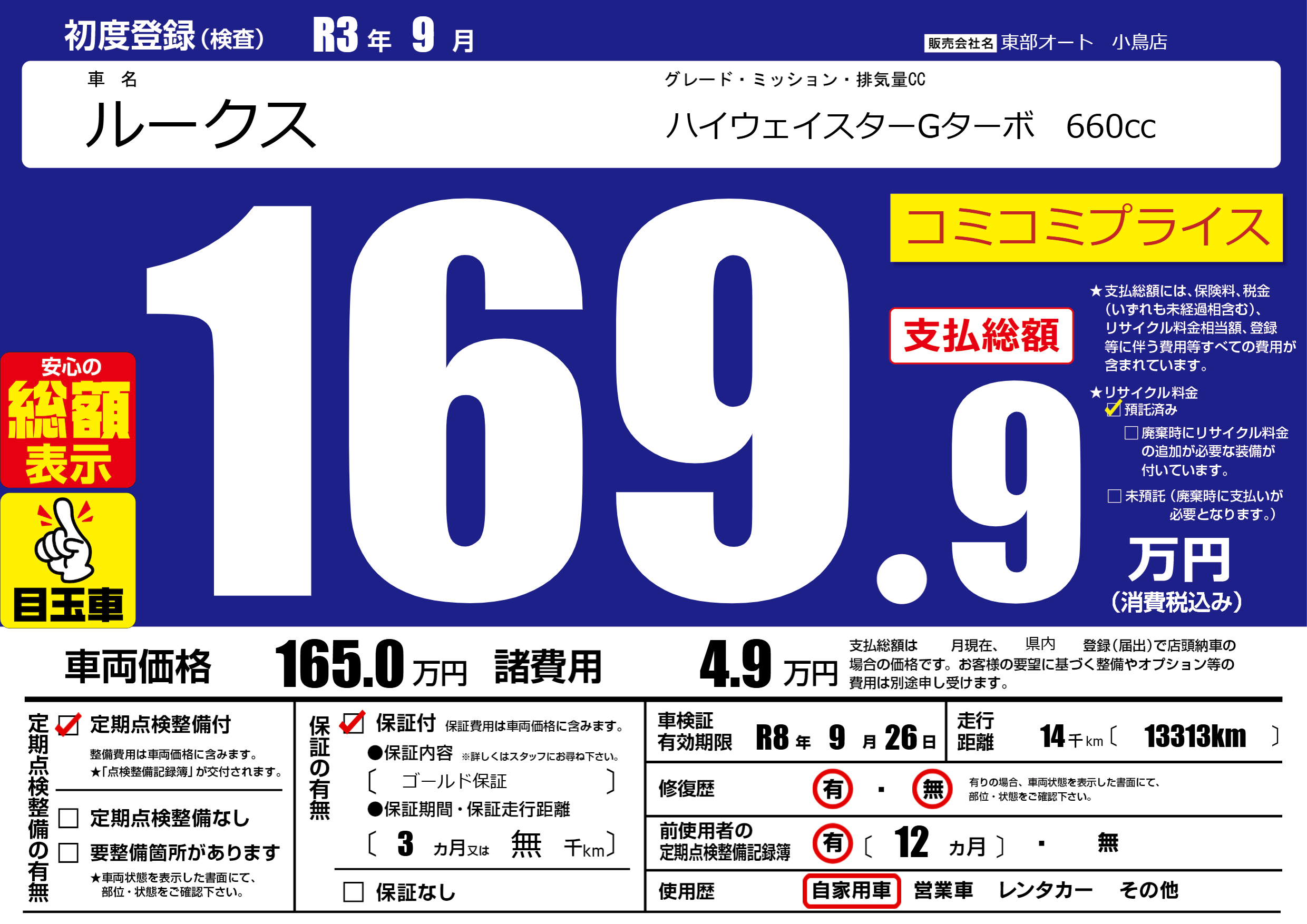 保証付き 保証内容( ゴールド保証) 3ヶ月または(無)千kmまで |