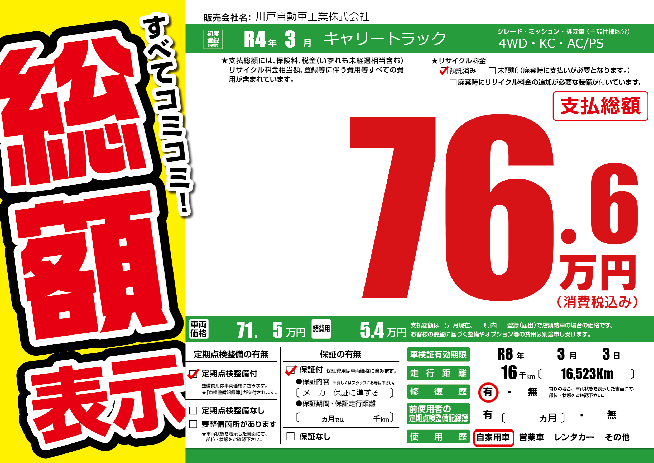 | 車検制限 | R8年 3月 3日 | ||