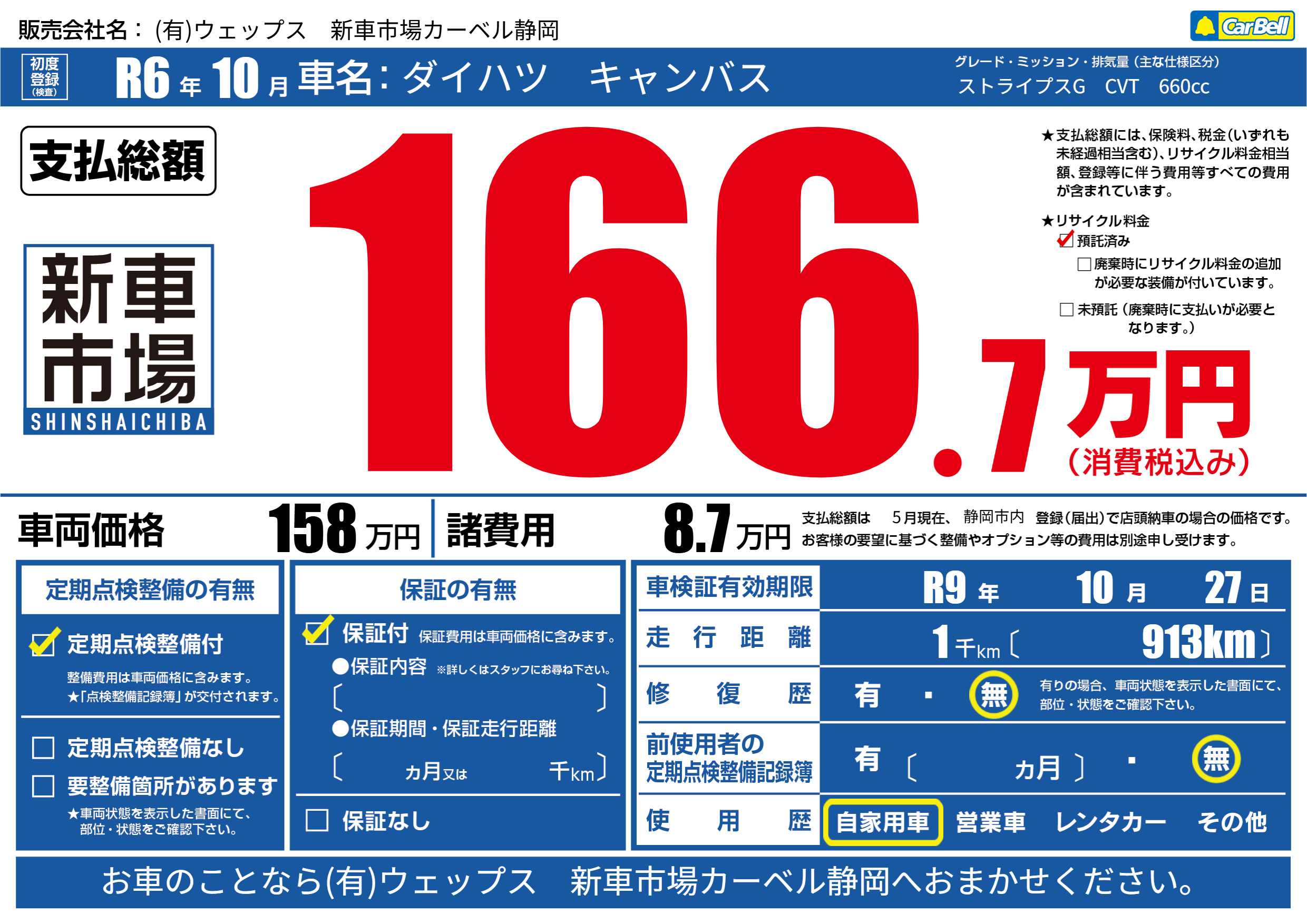 | 車名 | ダイハツ キャンバス | グレード ミッション 排気量 |