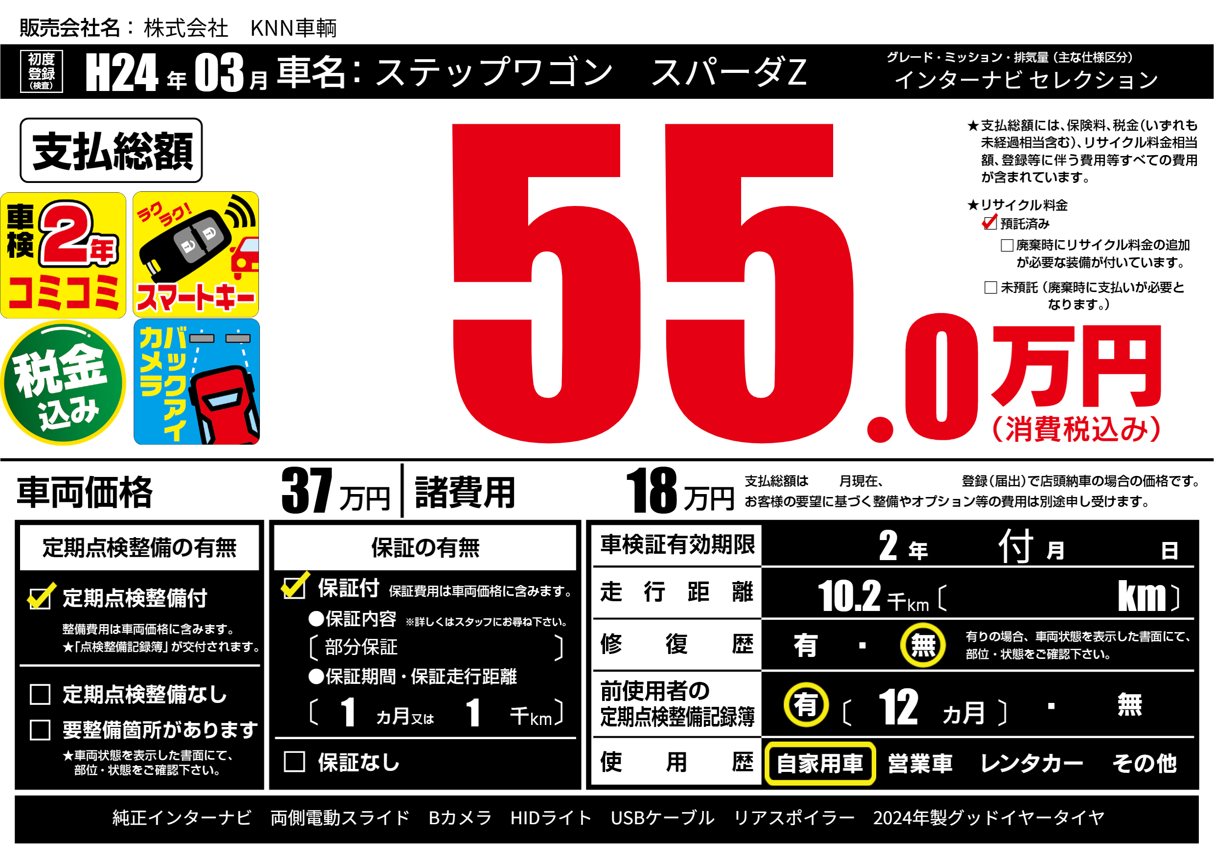 | 車名 | ステップワゴン スパーダZ | グレード ミッション 排気量 |