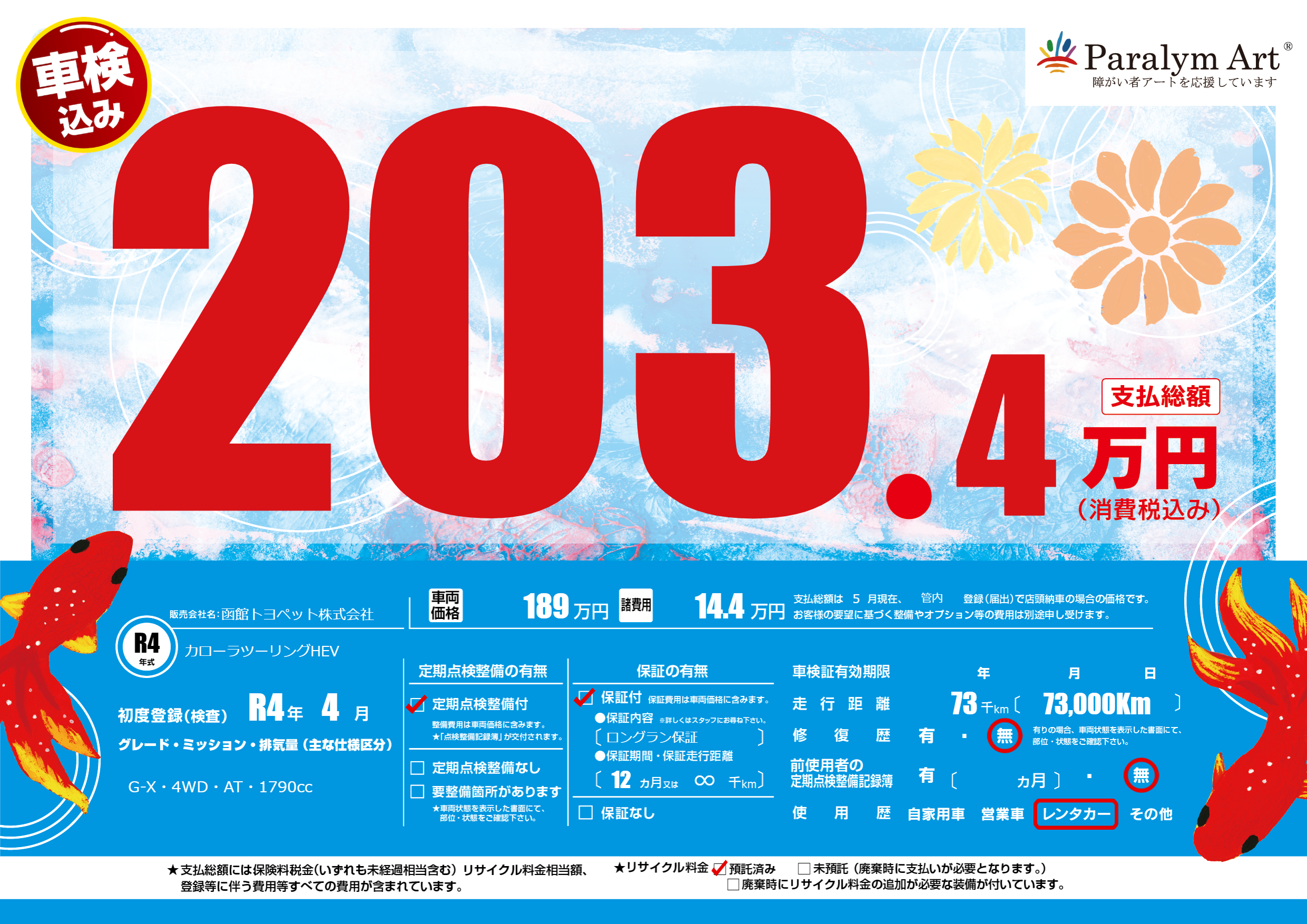 | 走行キロ | 7.3万km | 初年度登録 | R4年4月 |
