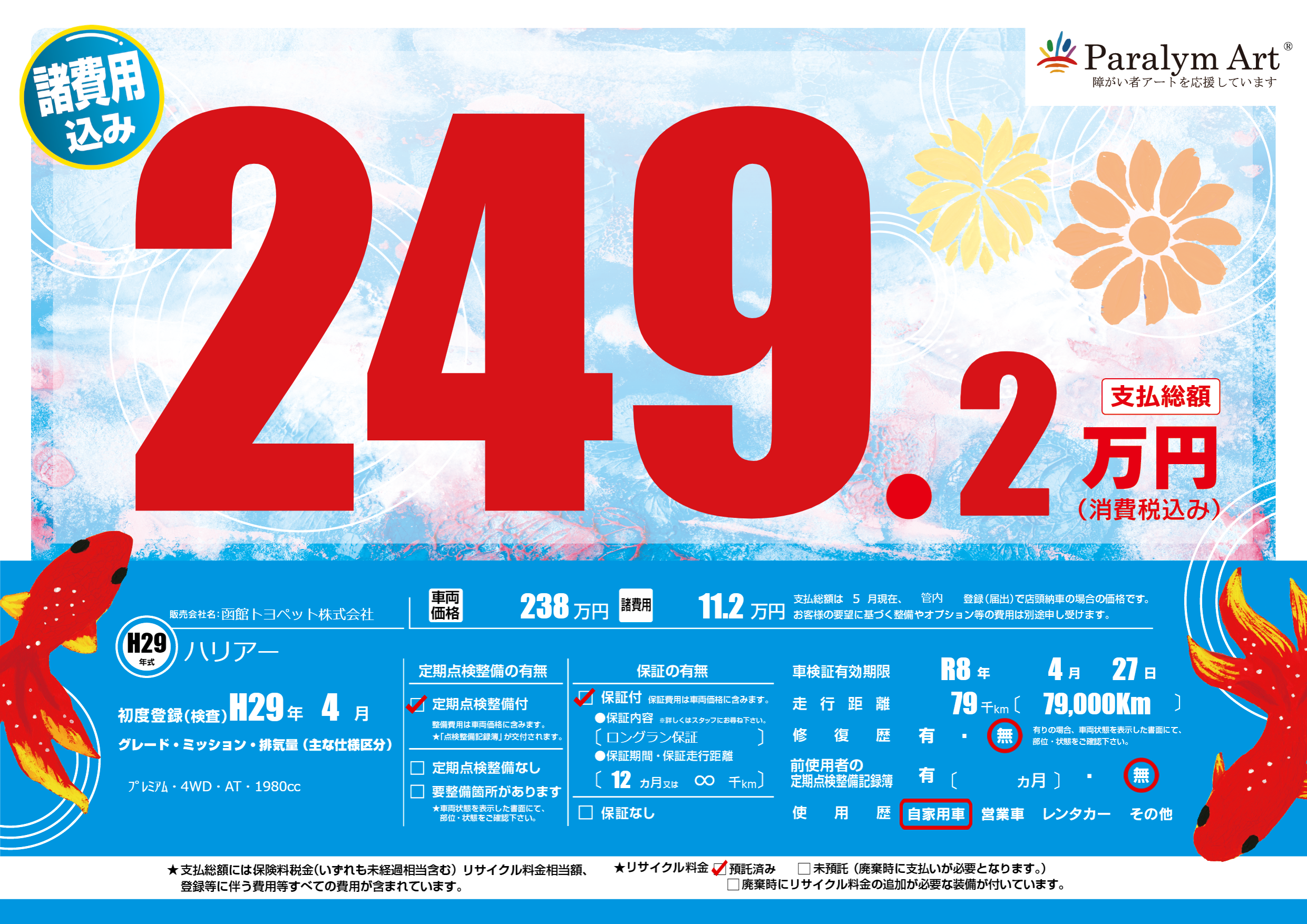 | 走行キロ | 7.9万km | 初年度登録 | H29年4月 |