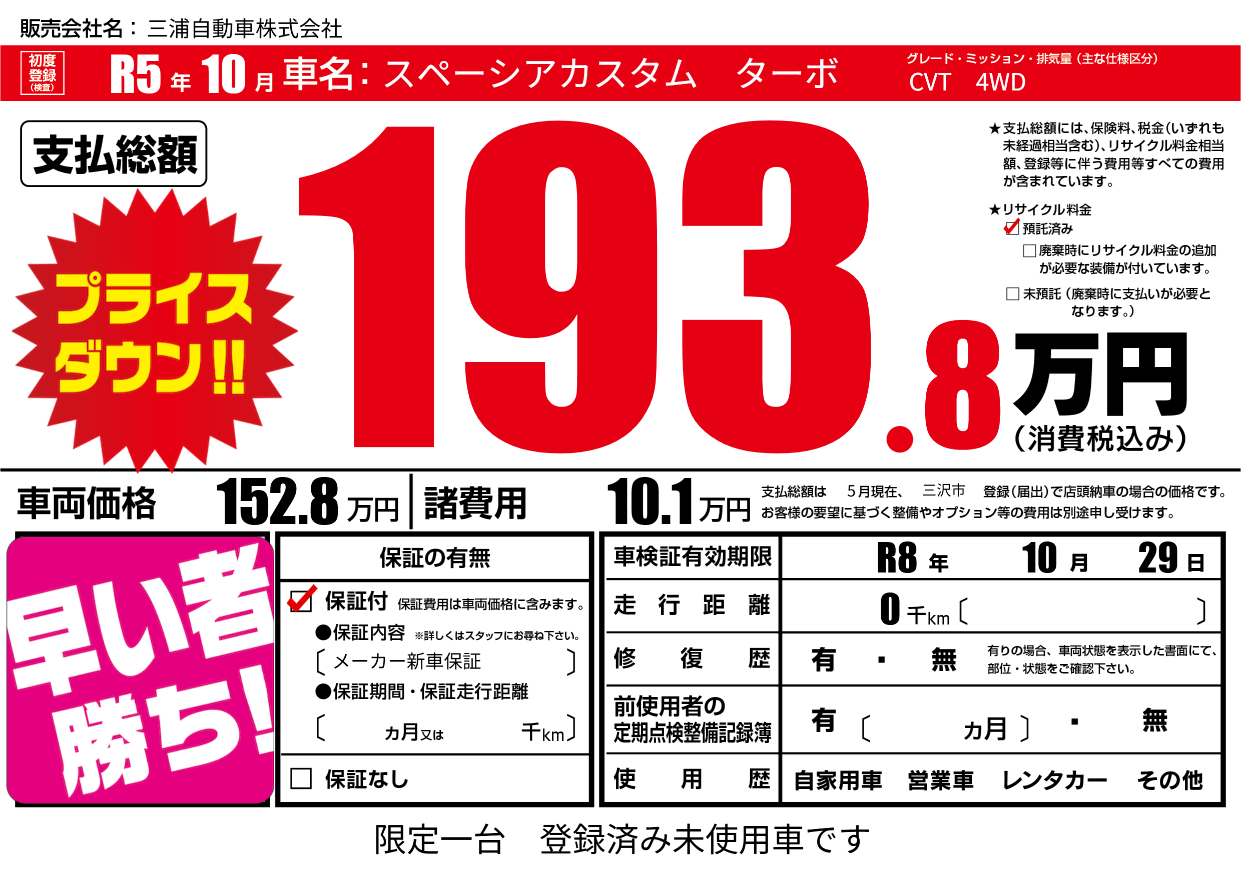 | 走行キロ | - | 初年度登録 | R5年10月 |