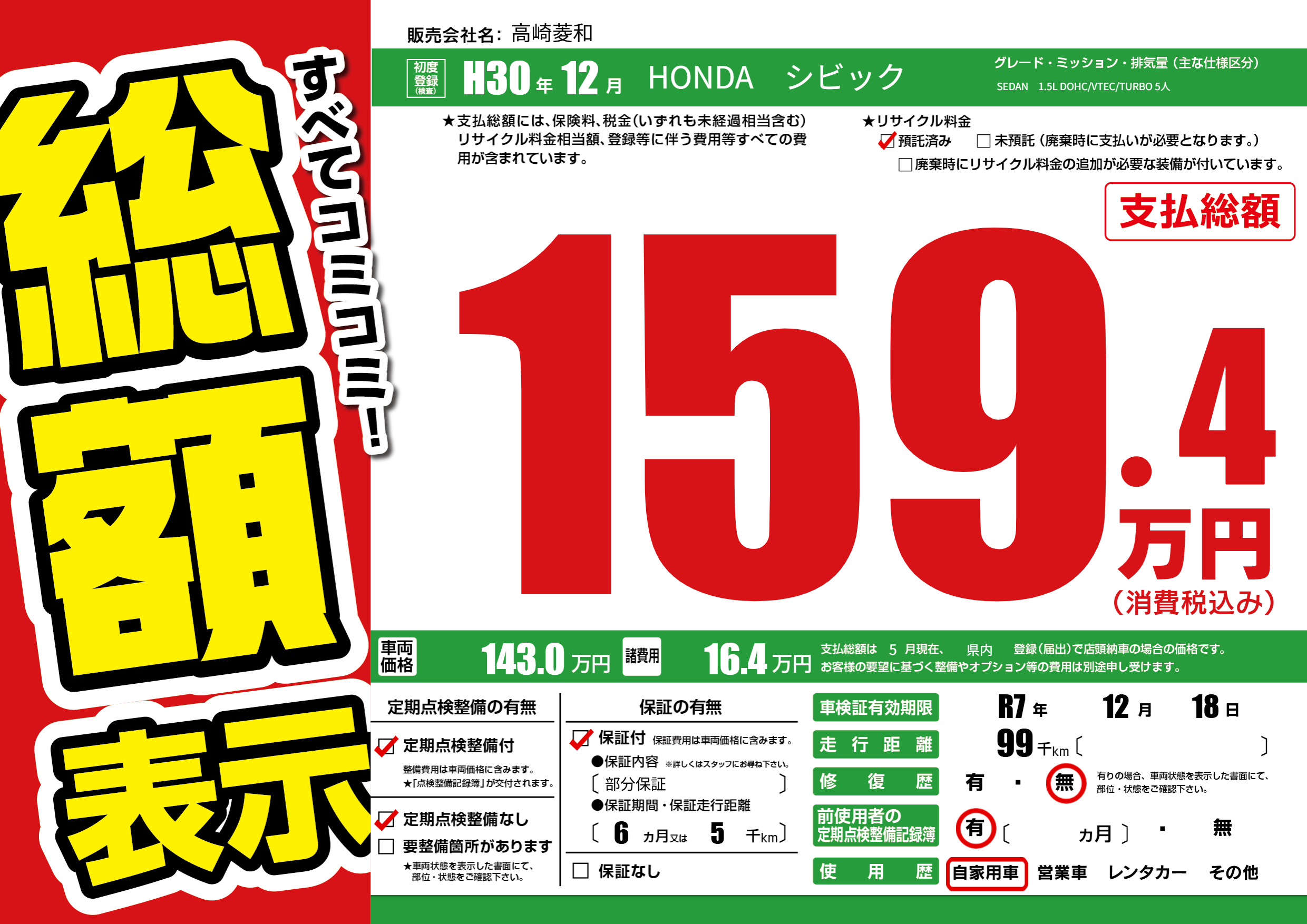 | 車検制限 | R7年 12月 18日 | ||