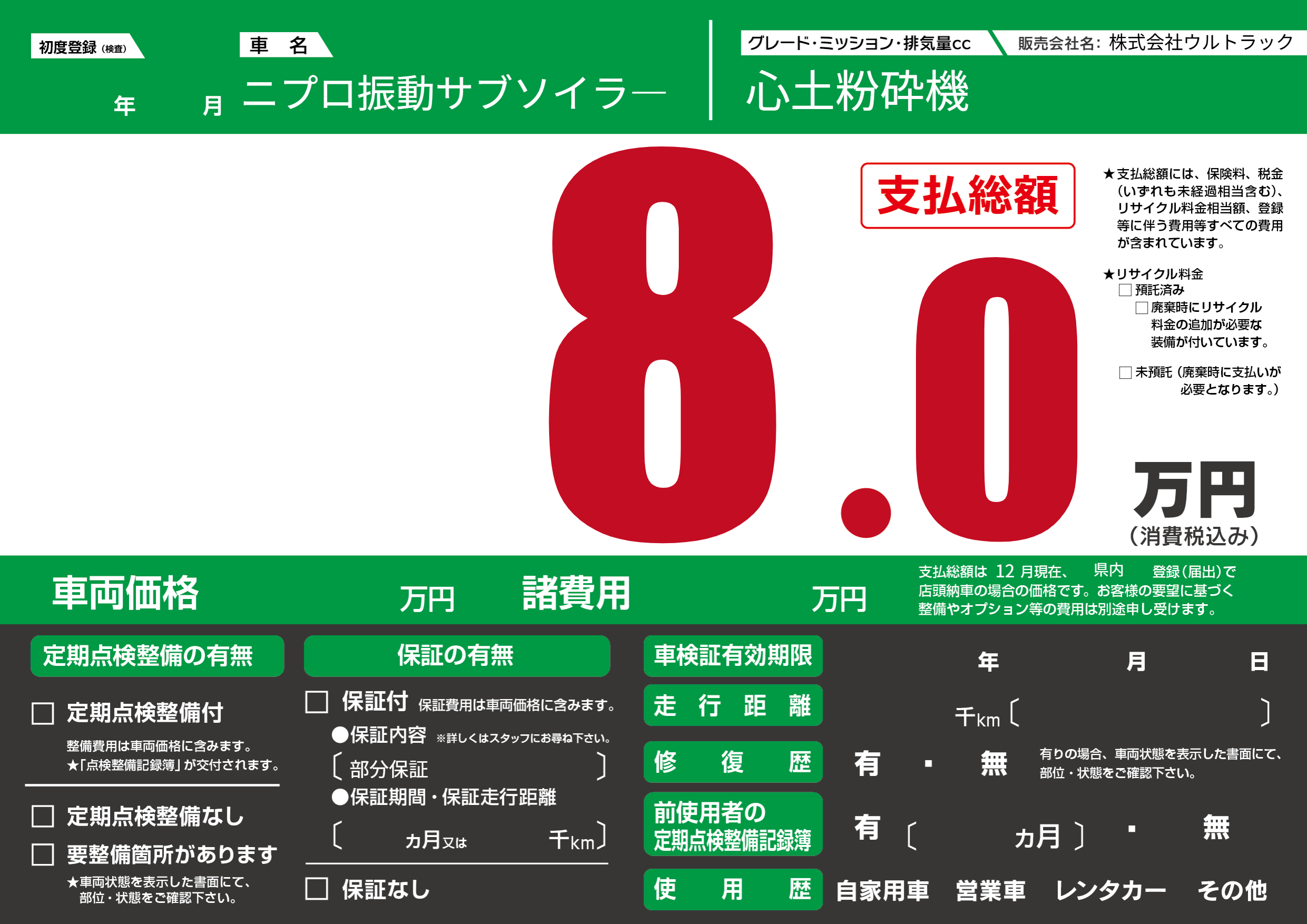 | 車名 | ニプロ振動サブソイラ― | グレード ミッション 排気量 |