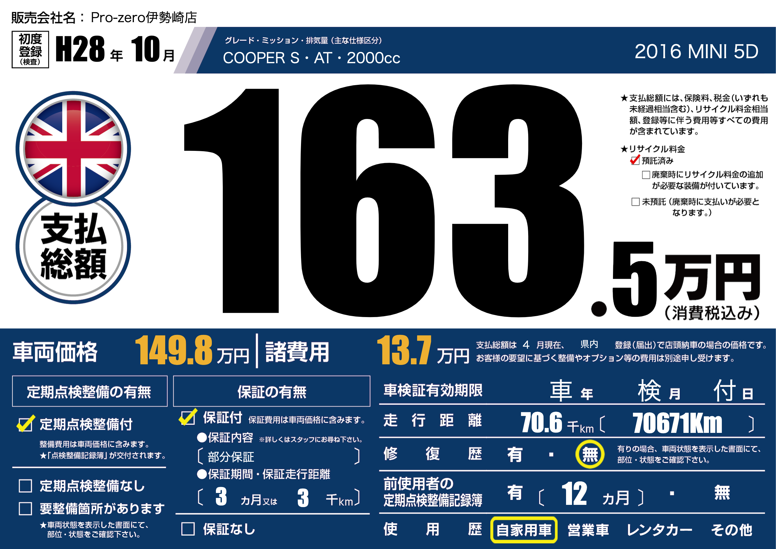 定期点検整備 | 定期点検整備あり |