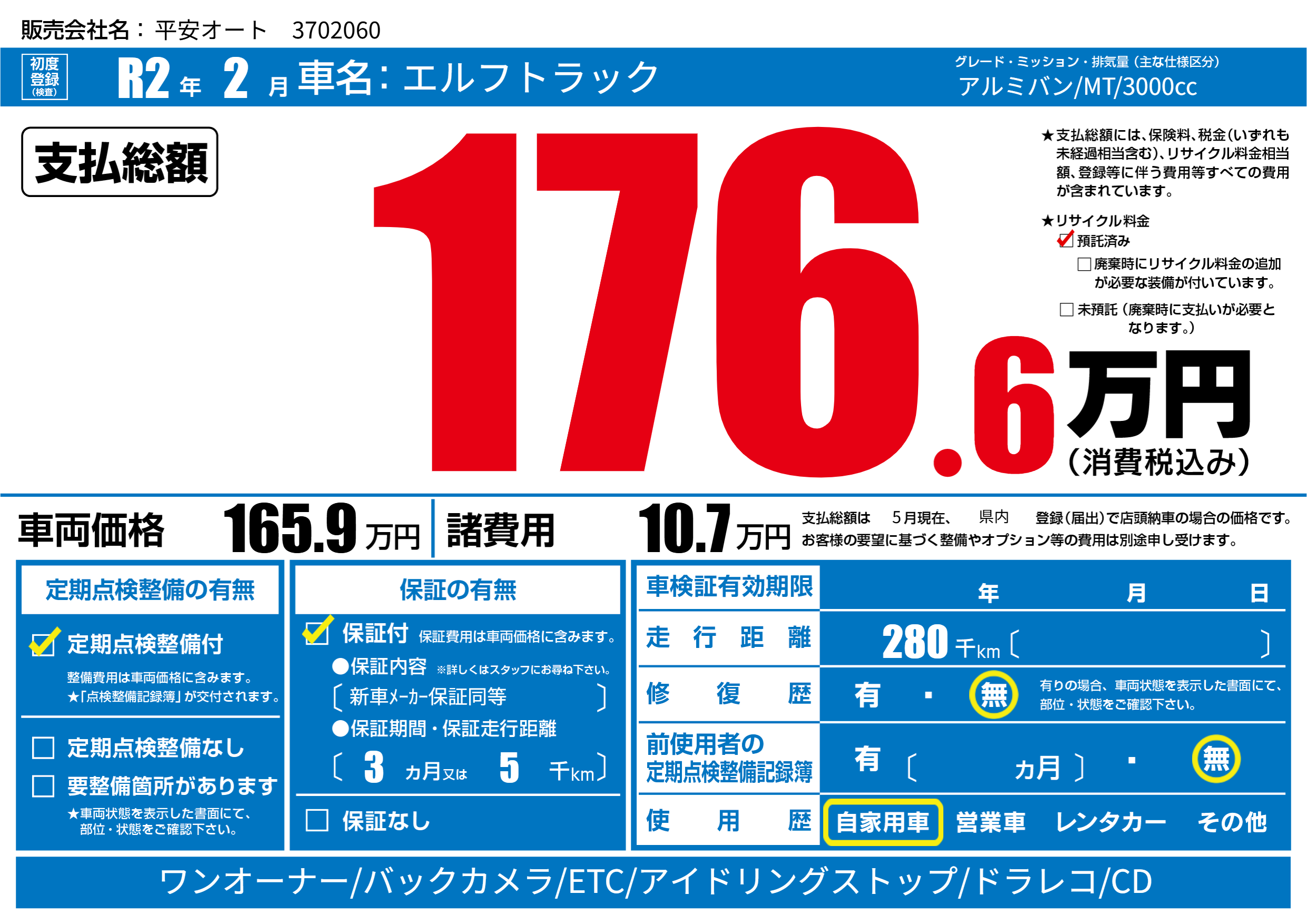 | 定期点検整備 | 定期点検整備あり | ||