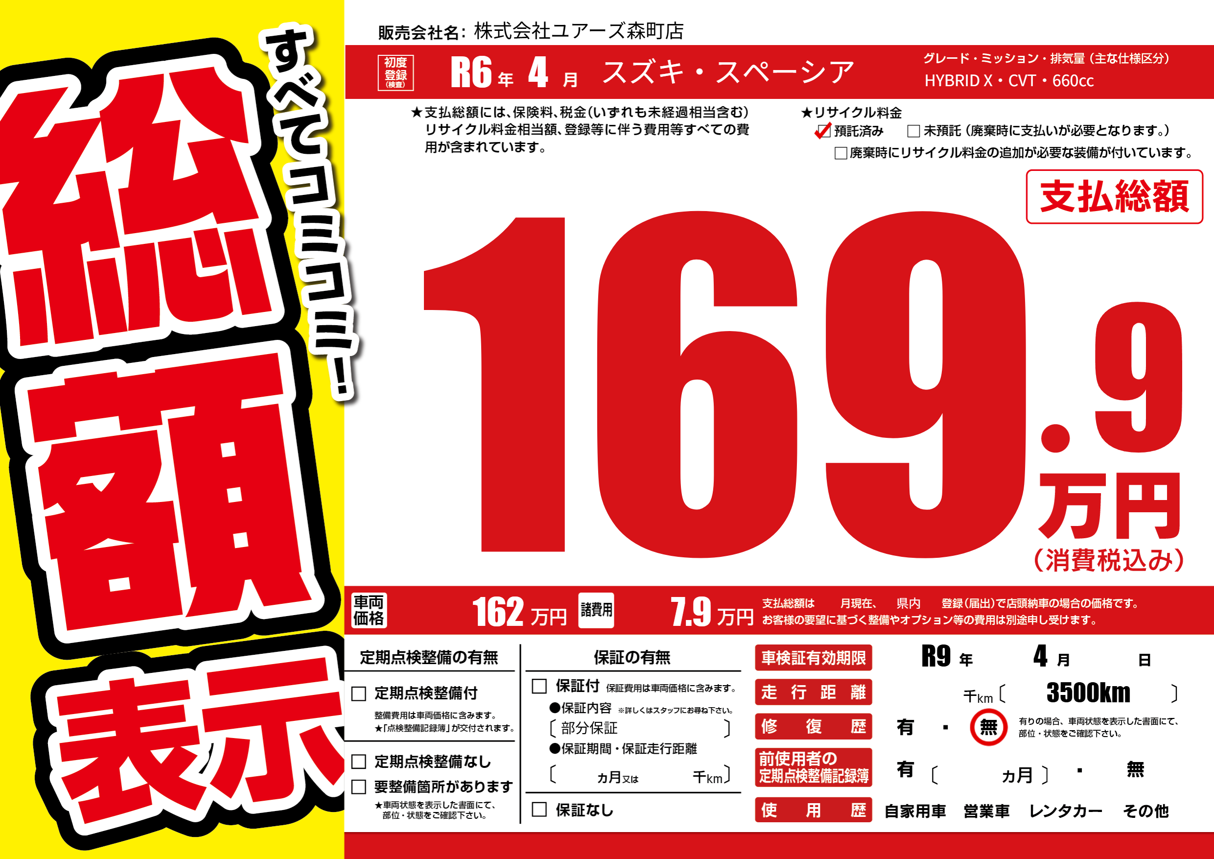 なし | 車検制限 | R9年4月---月 |