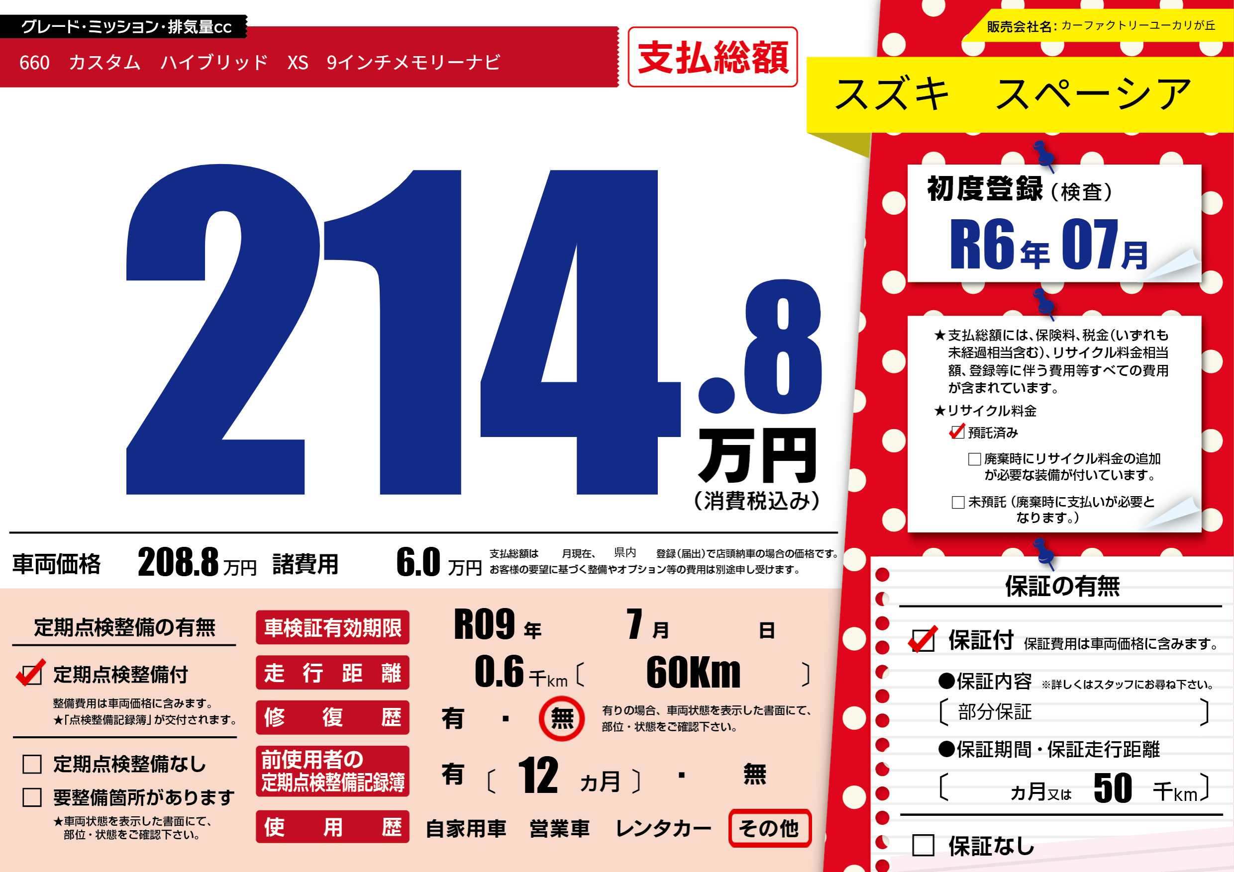 | 車検制限 | R09年 7月 - 日 | ||