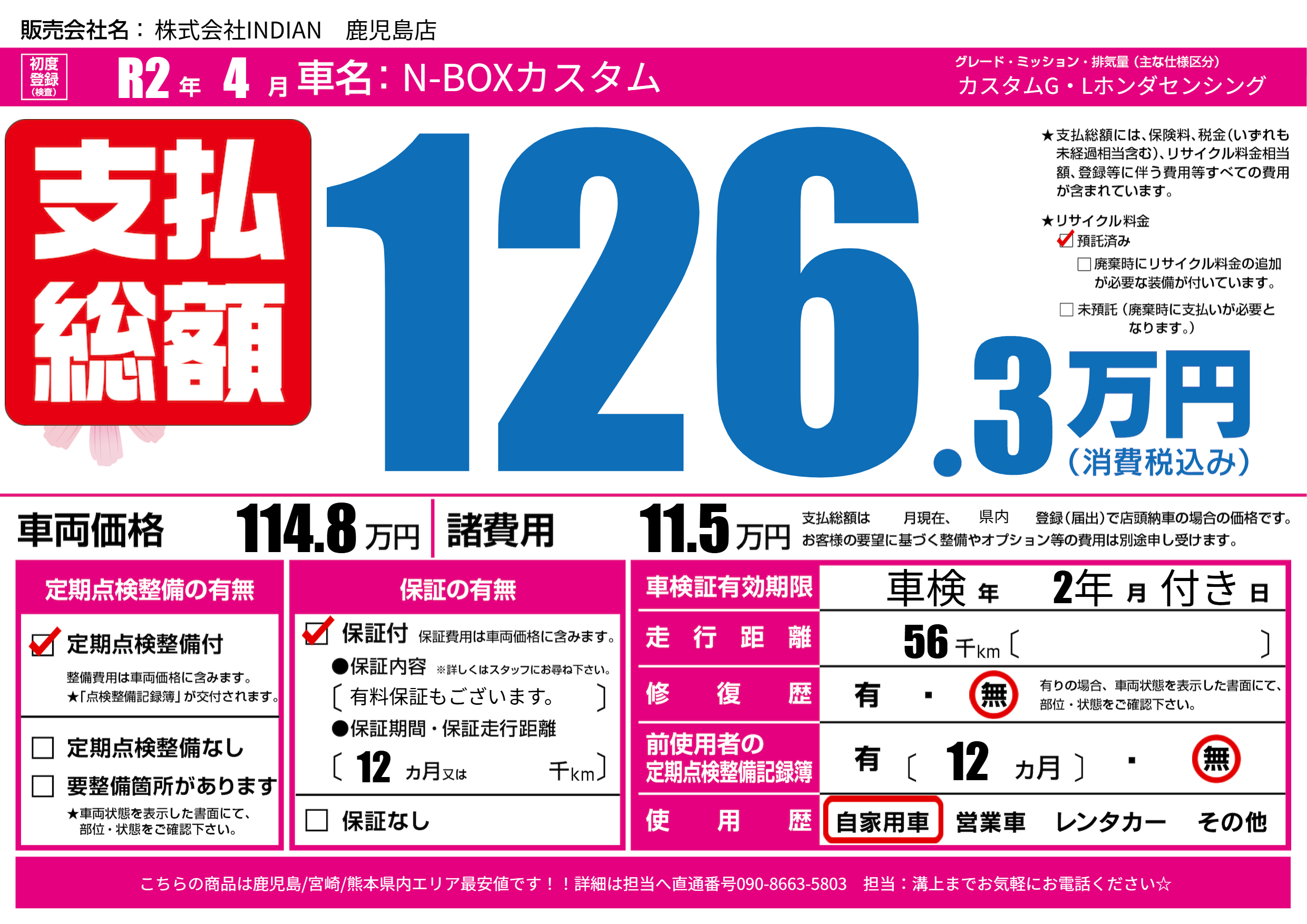 | 走行キロ | 5.6万km | 初年度登録 | R2年4月 |