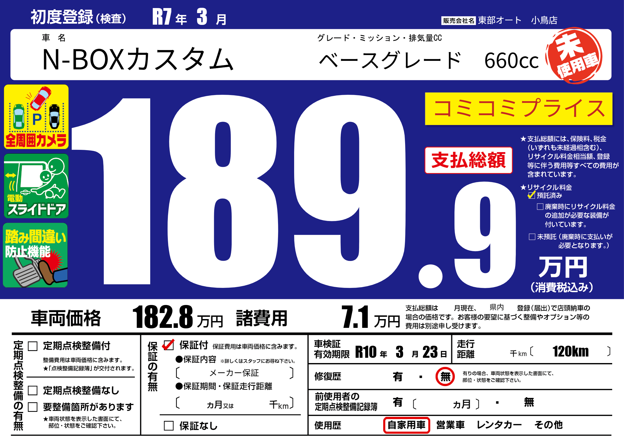 | 車名 | N-BOXカスタム | グレード ミッション 排気量 |