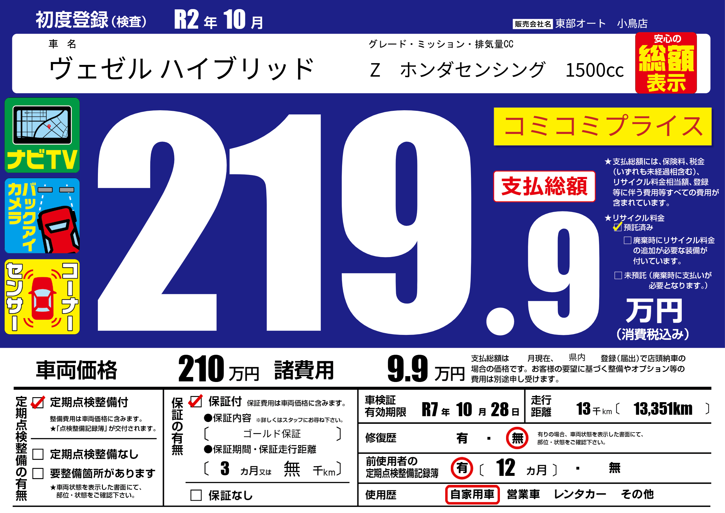 | 定期点検整備 | 定期点検整備あり | ||