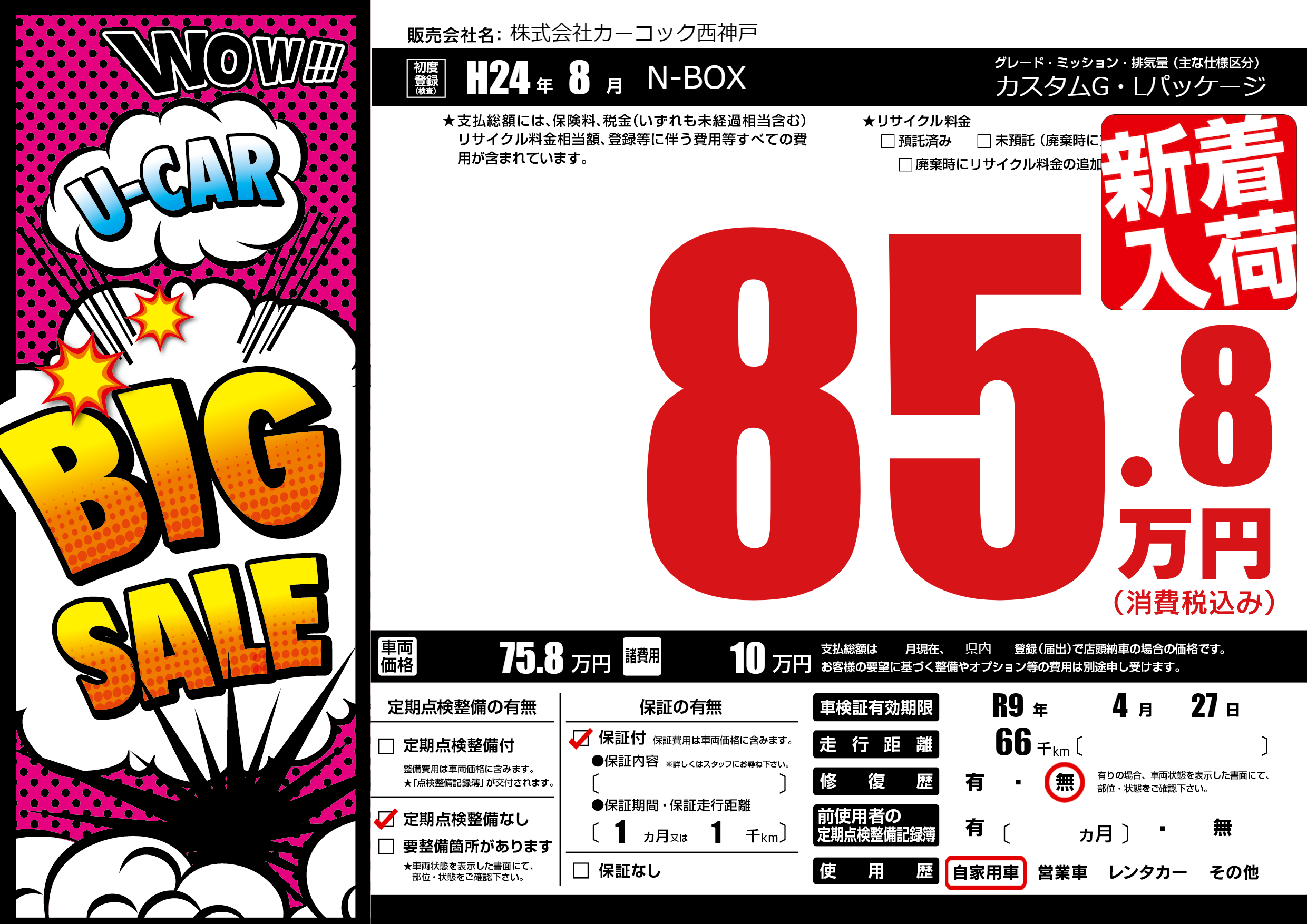 | 走行キロ | 6.6万km | 初年度登録 | H24年8月 |