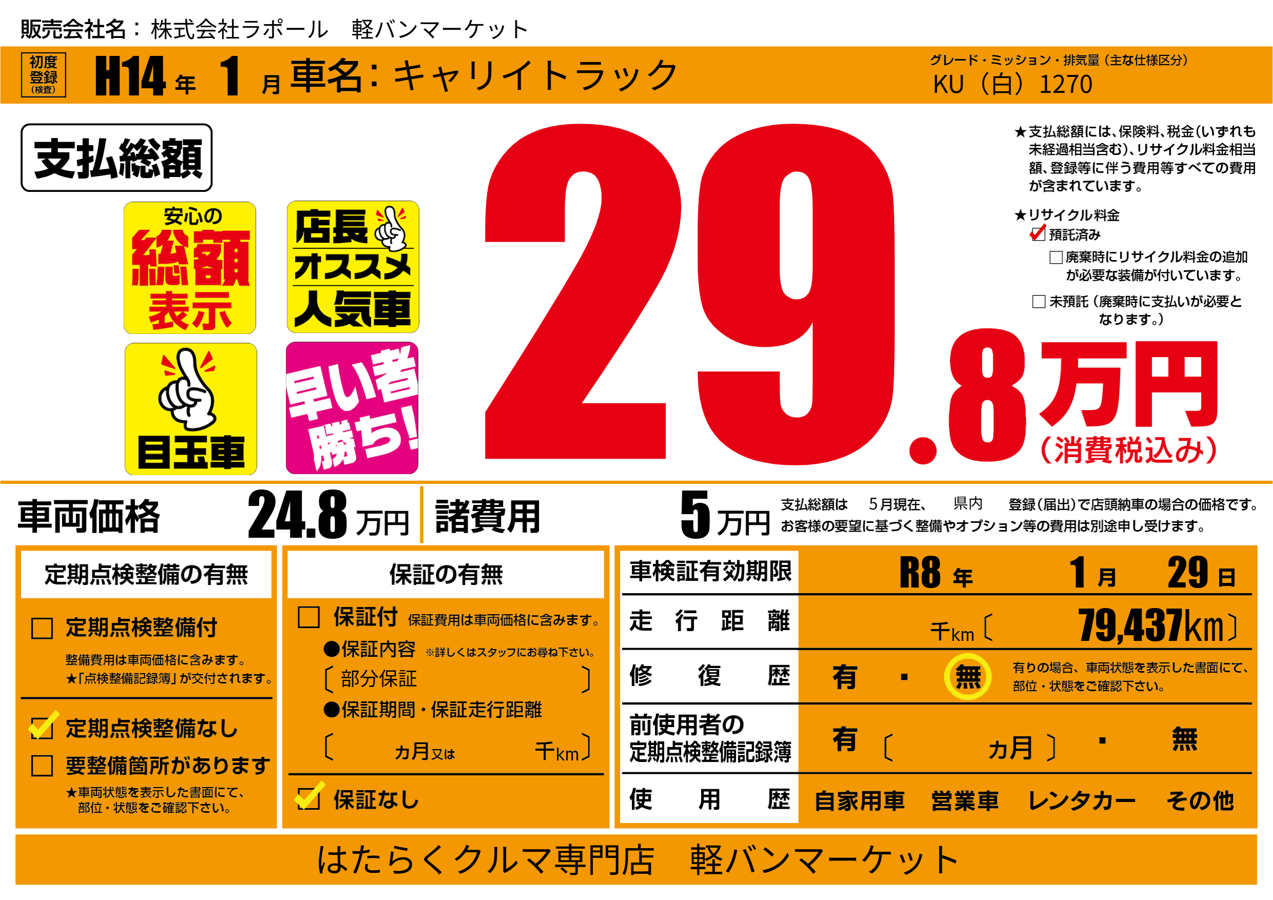 なし | 車検制限 | R8年1月29月 |