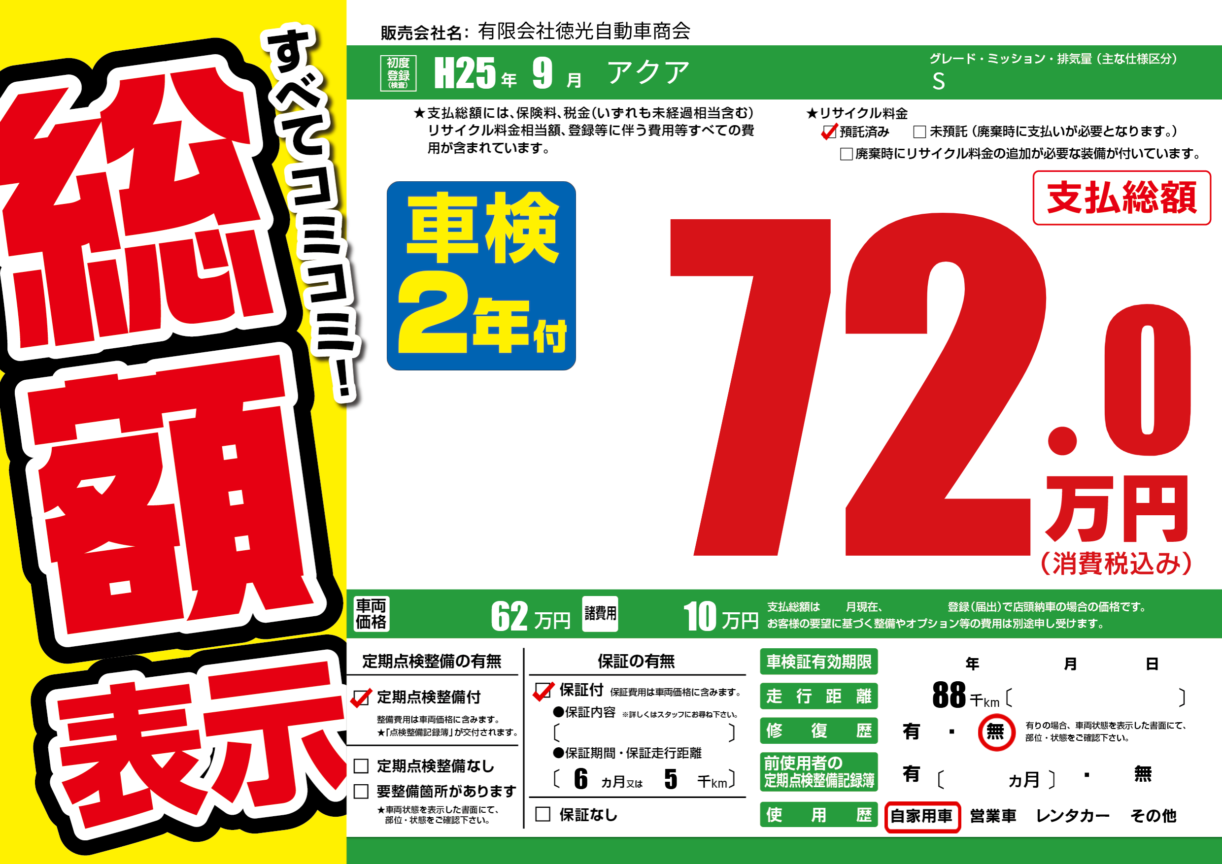| 定期点検整備 | 定期点検整備あり | ||