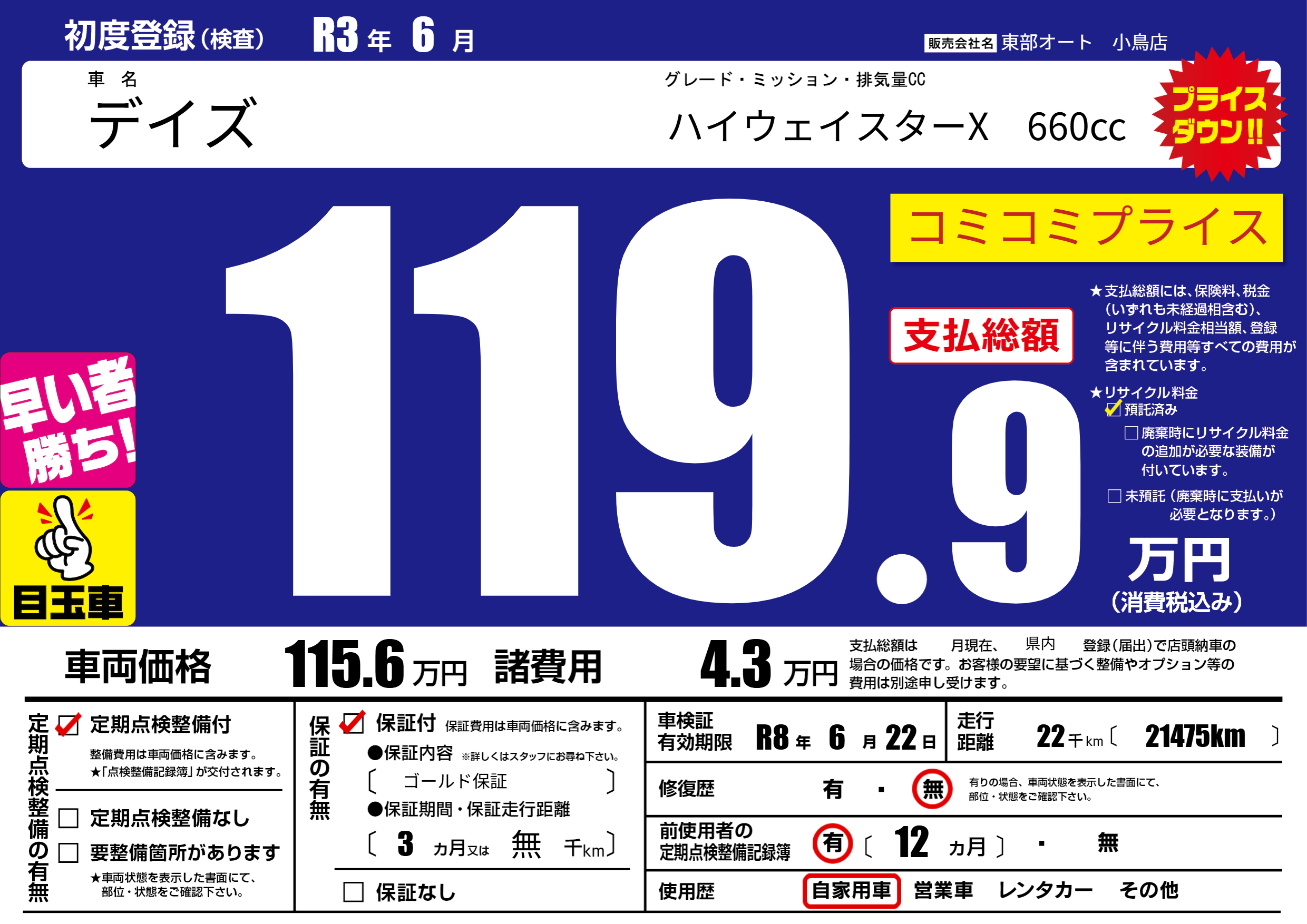 | 車検制限 | R8年 6月 22日 | ||