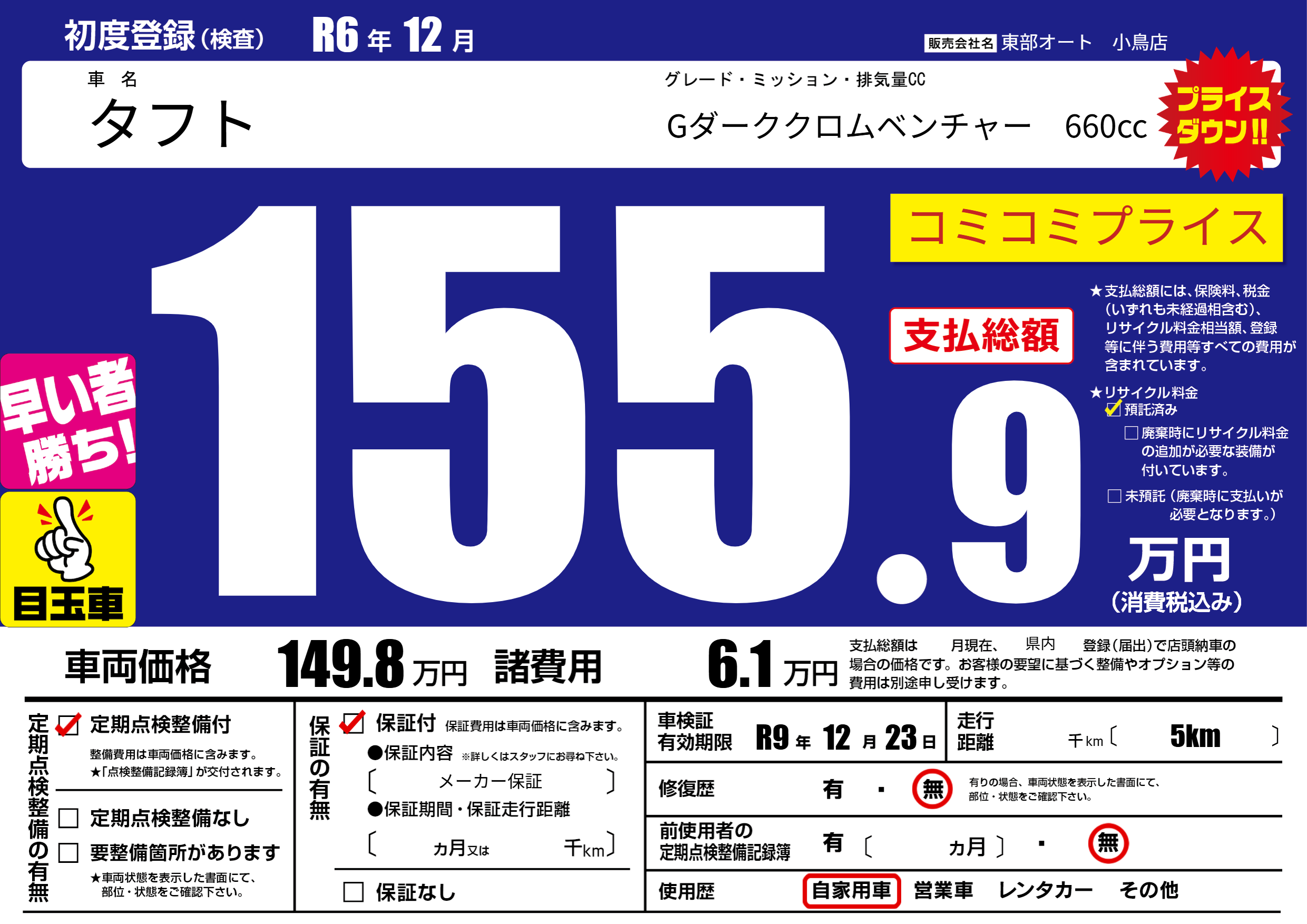 | 走行キロ | - | 初年度登録 | R6年12月 |