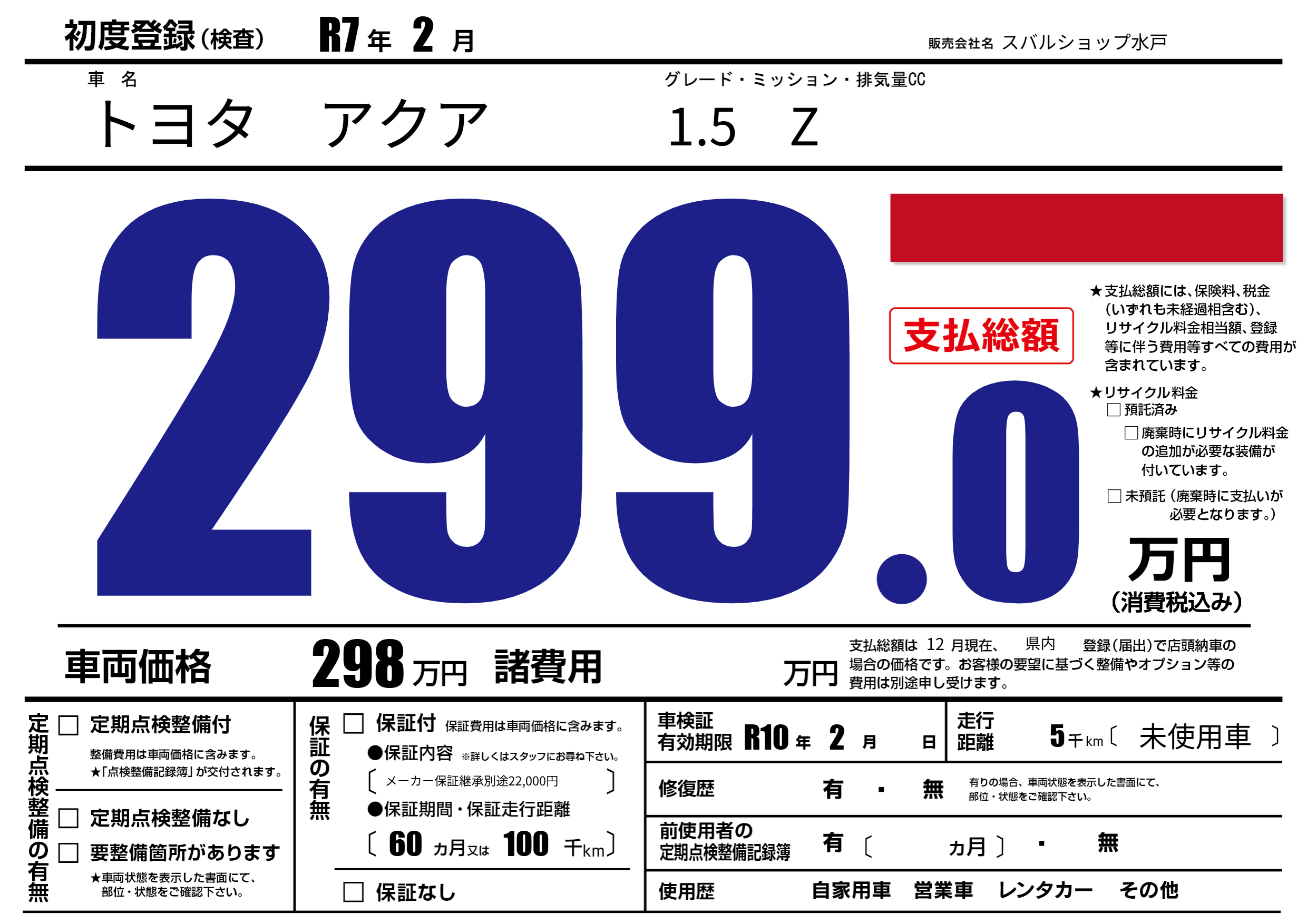 保証内容(メーカー保証継承別途22,000円) 60ヶ月または100千km