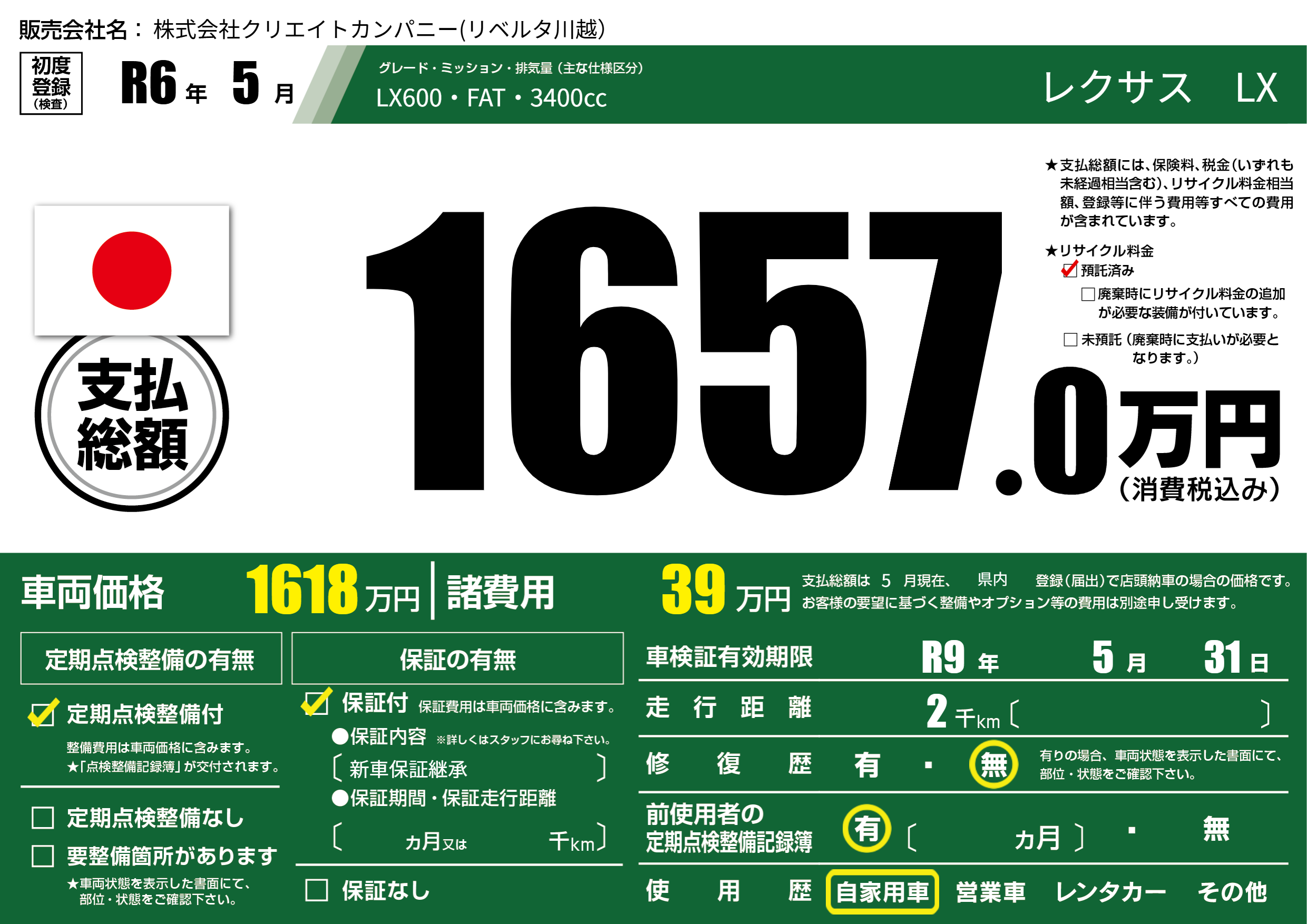 株式会社クリエイトカンパニー(リベルタ川越)の展示車