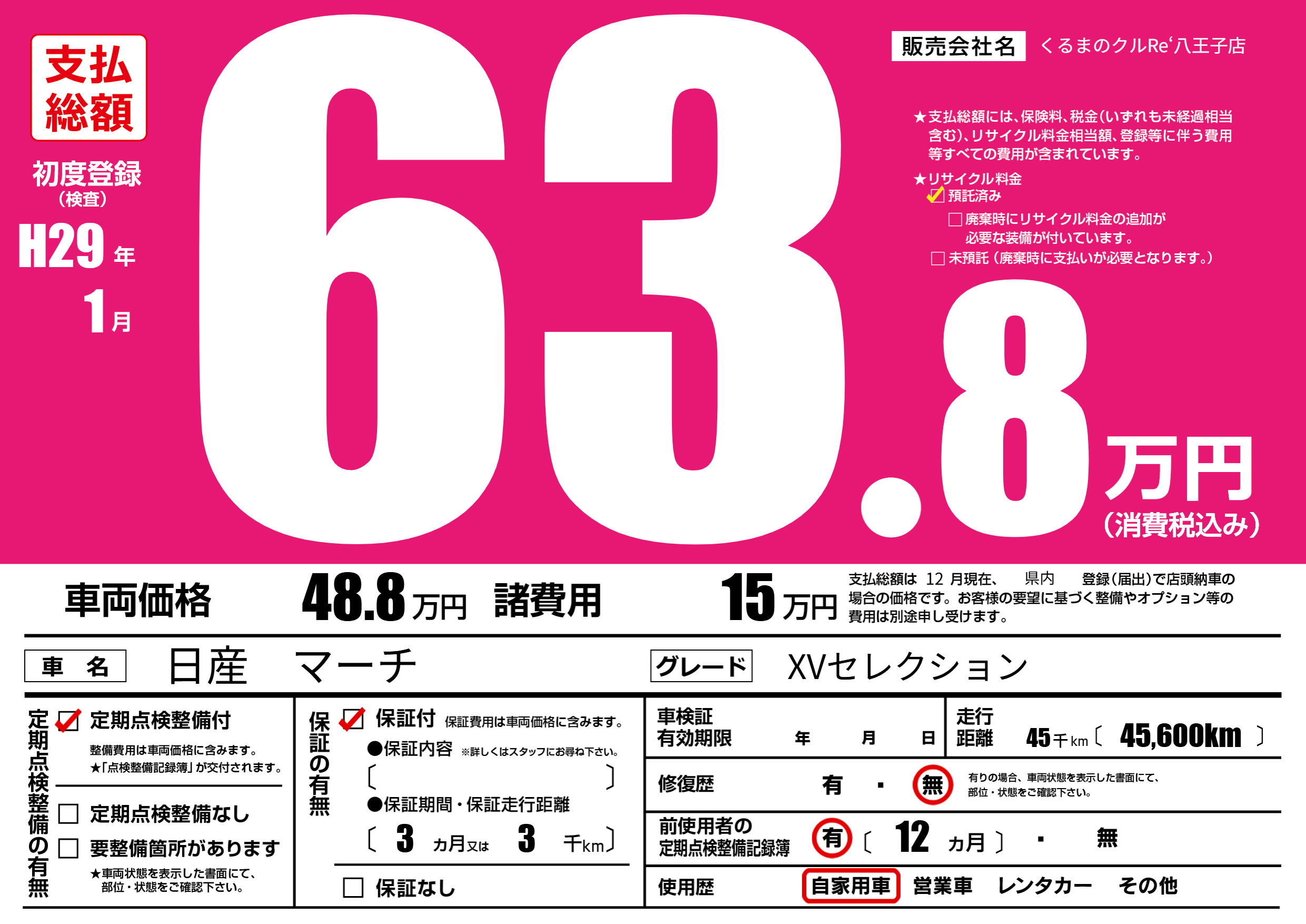 | 車名 | 日産 マーチ | グレード ミッション 排気量 |