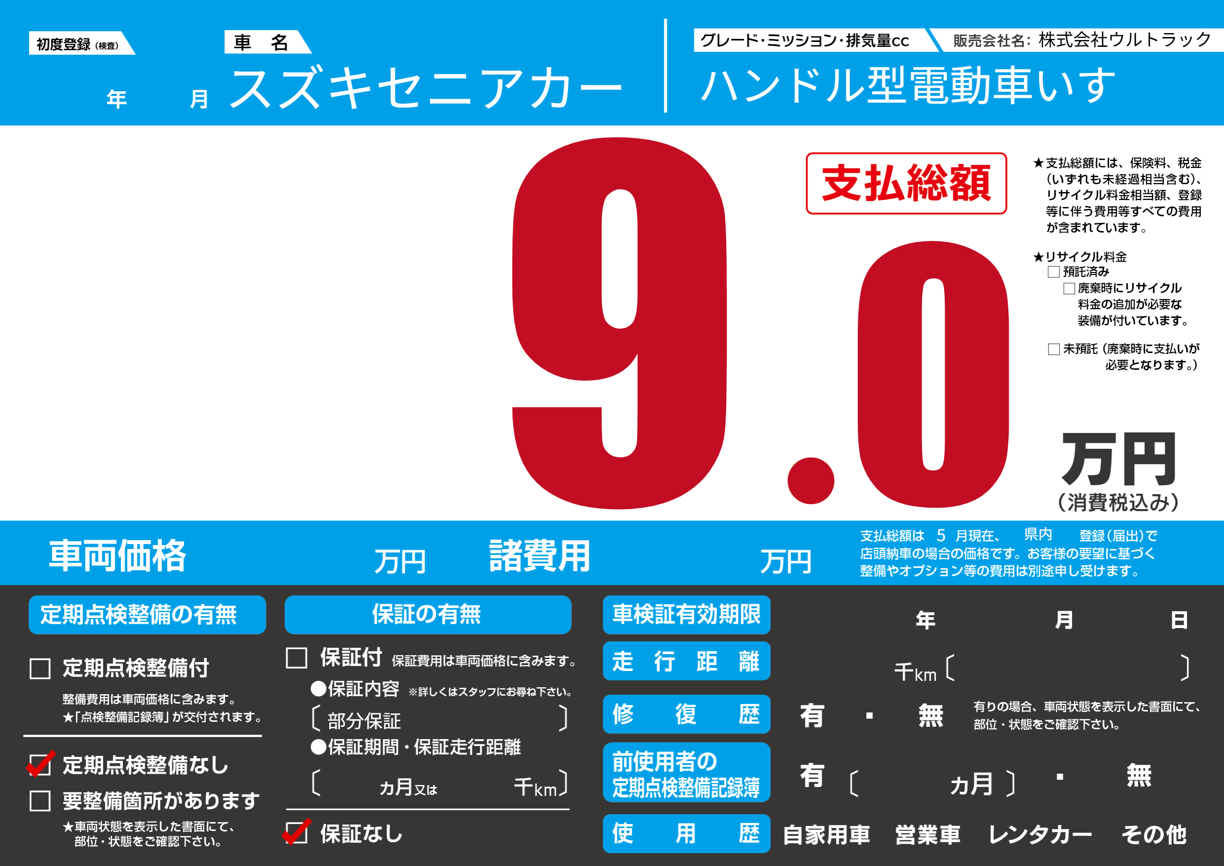 保証なし 保証内容(部分保証) ---ヶ月または()千kmまで |