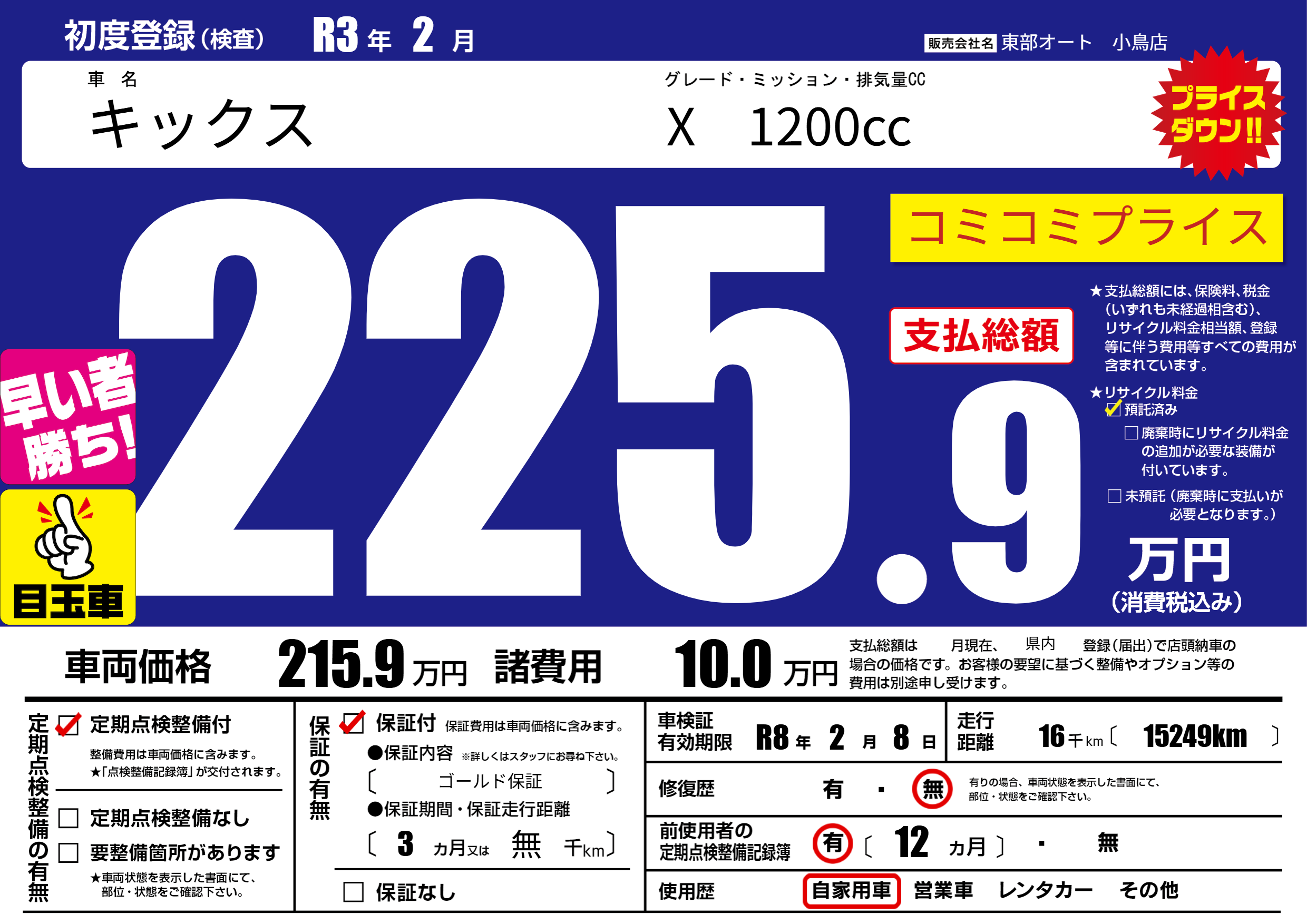 保証付き 保証内容( ゴールド保証) 3ヶ月または(無)千kmまで |