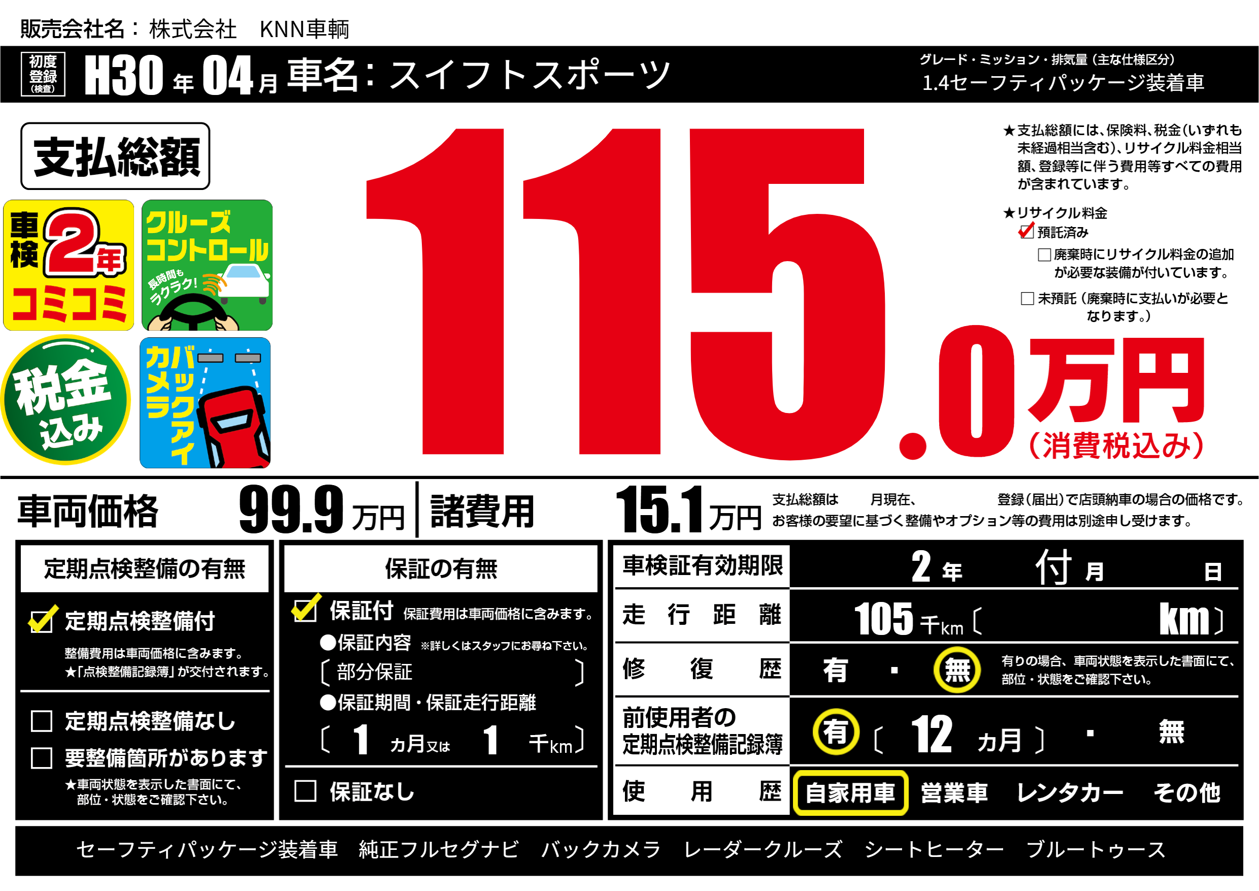 | 定期点検整備 | 定期点検整備あり | ||
