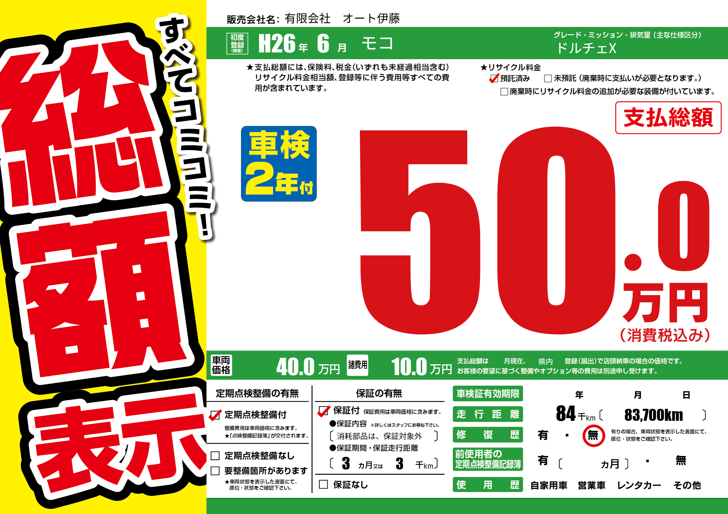| 走行キロ | 8.4万km | 初年度登録 | H26年6月 |