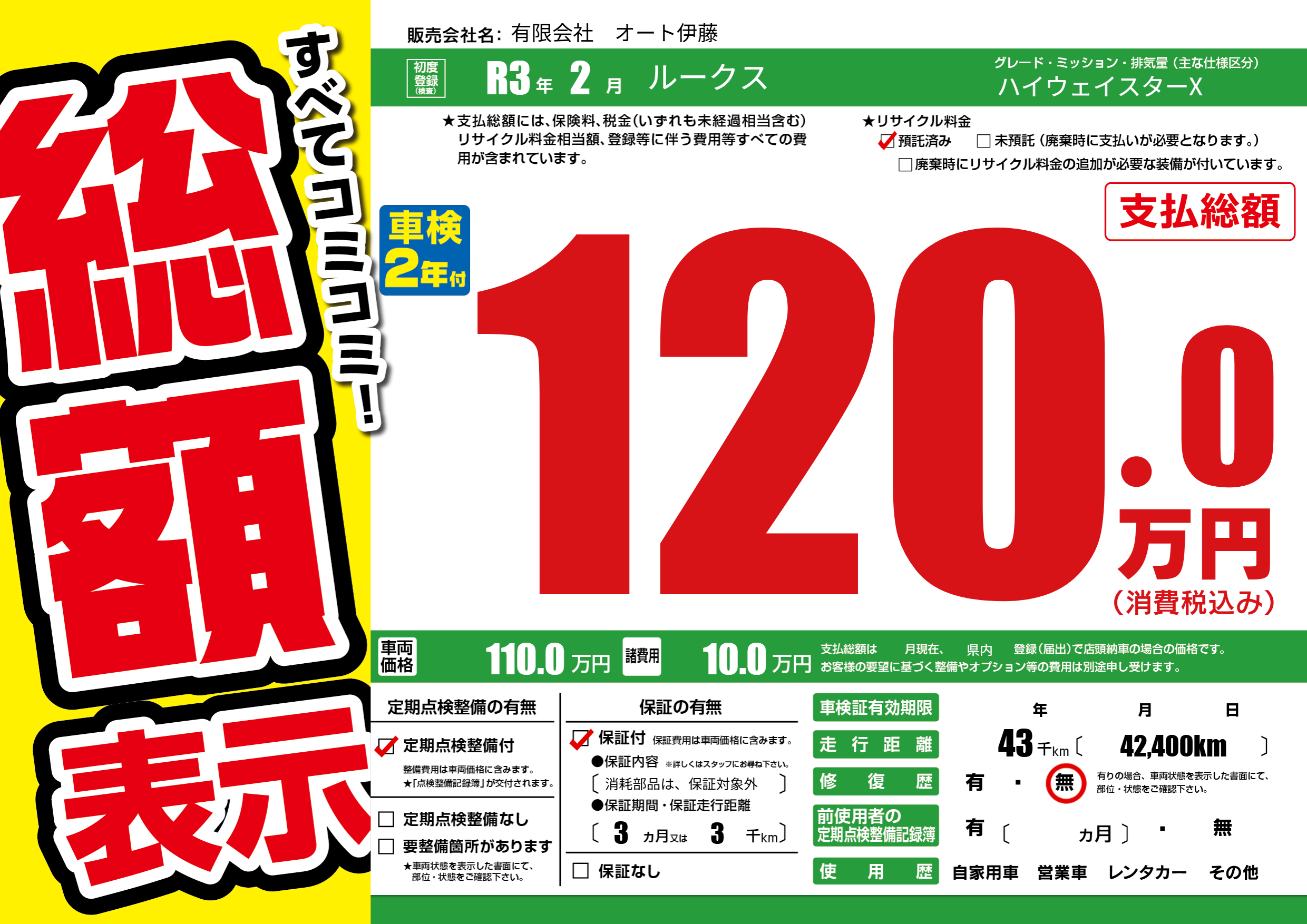 | 走行キロ | 4.3万km | 初年度登録 | R3年2月 |