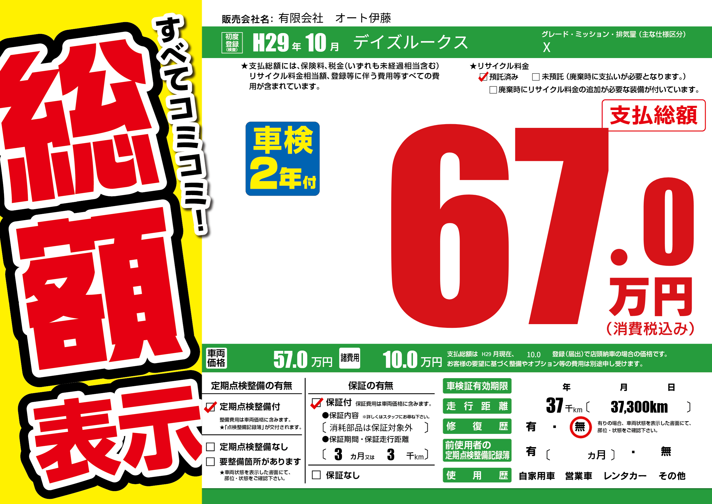 | 走行キロ | 3.7万km | 初年度登録 | H29年10月 |