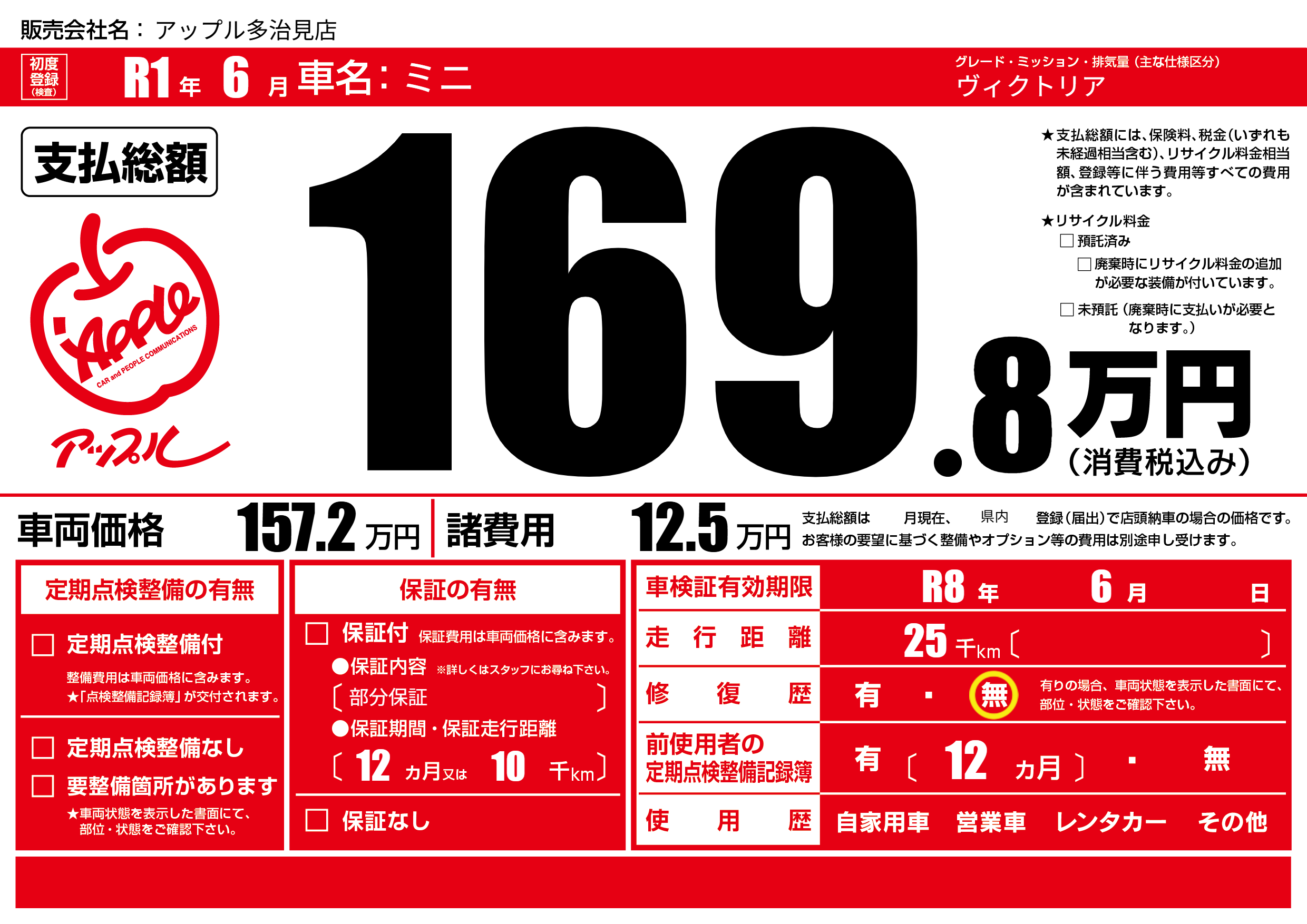 | 車名 | ミニ | グレード ミッション 排気量 |