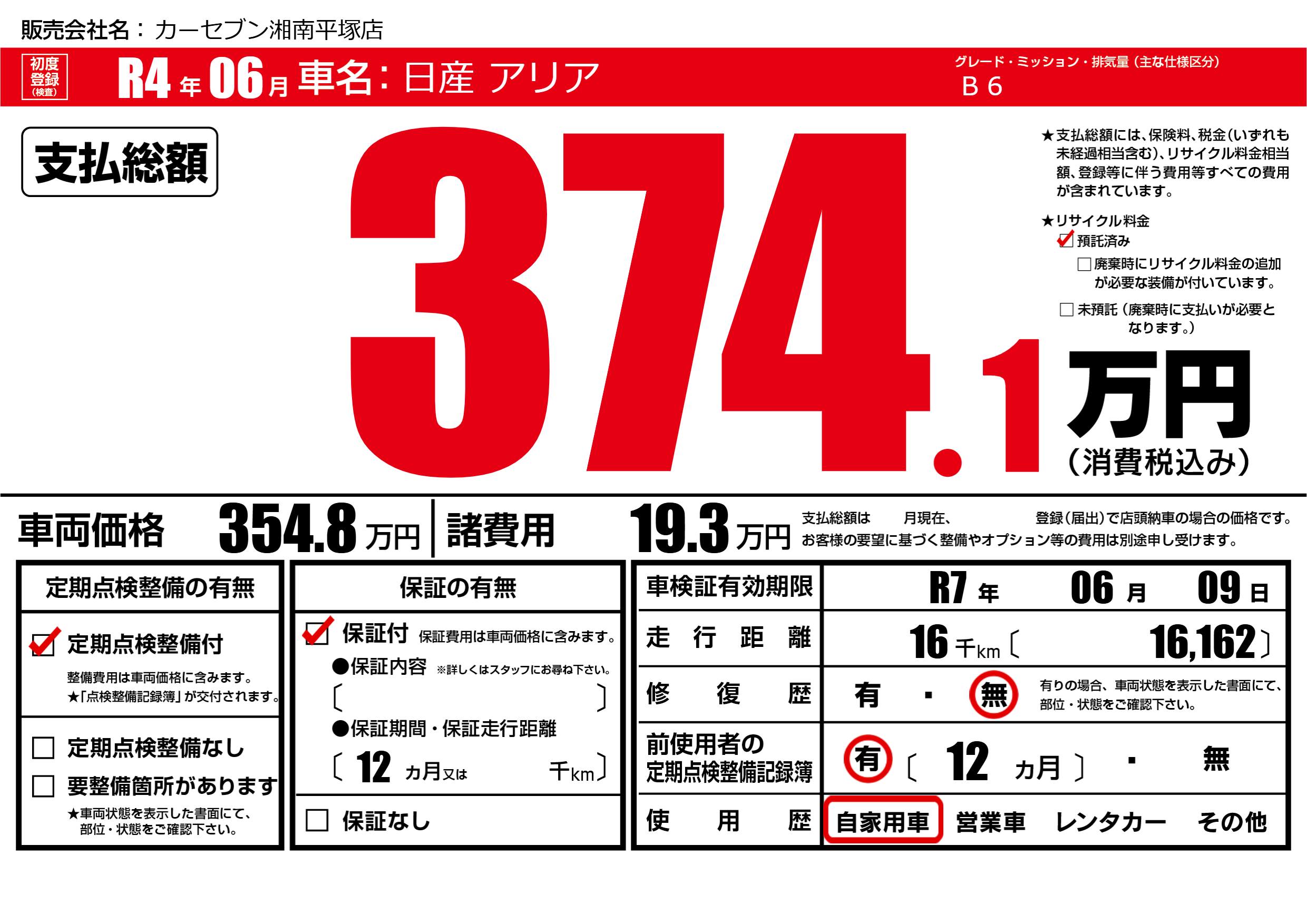 | 車検制限 | R7年 06月 09日 | ||
