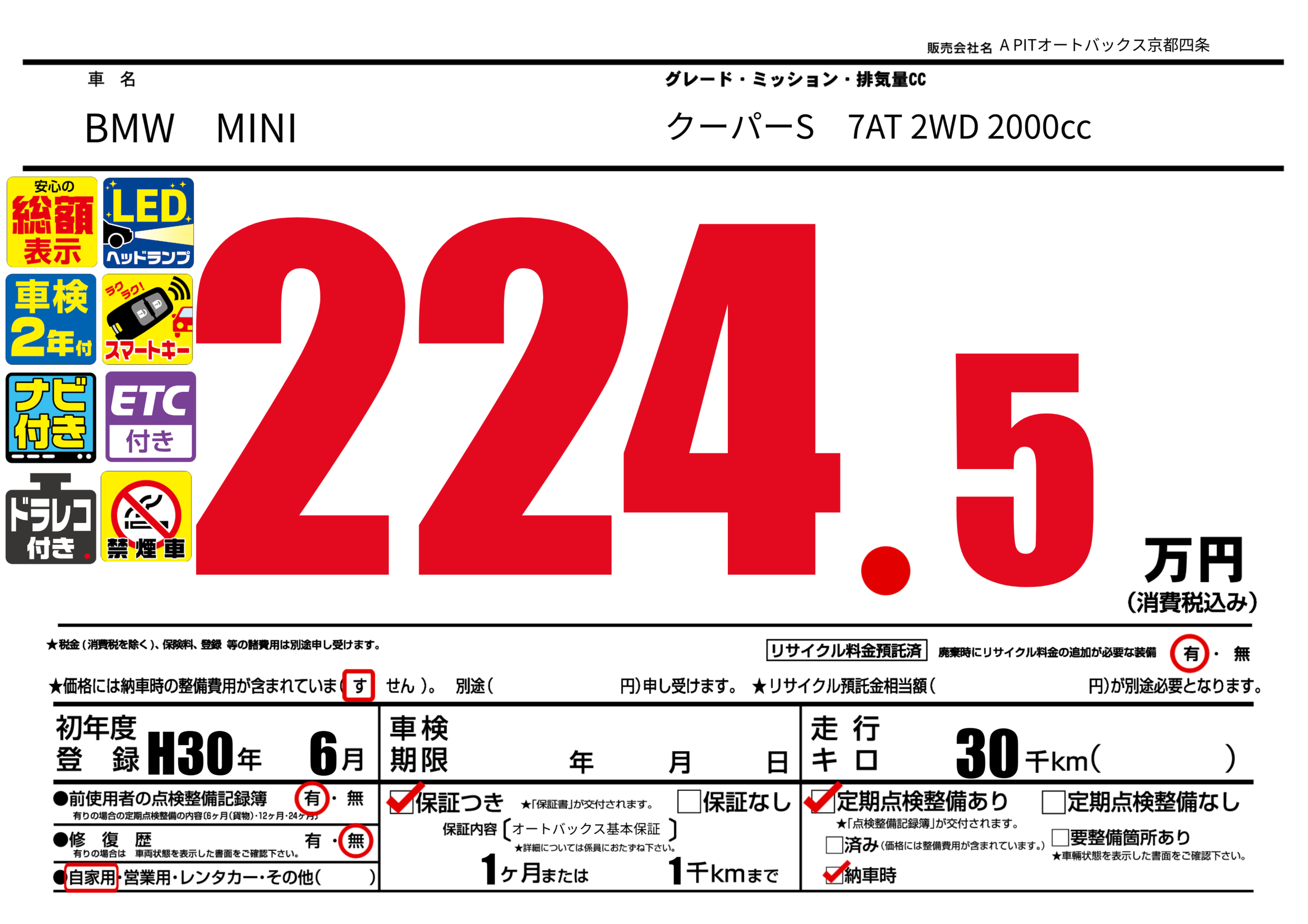 | 走行キロ | 3万km | ||