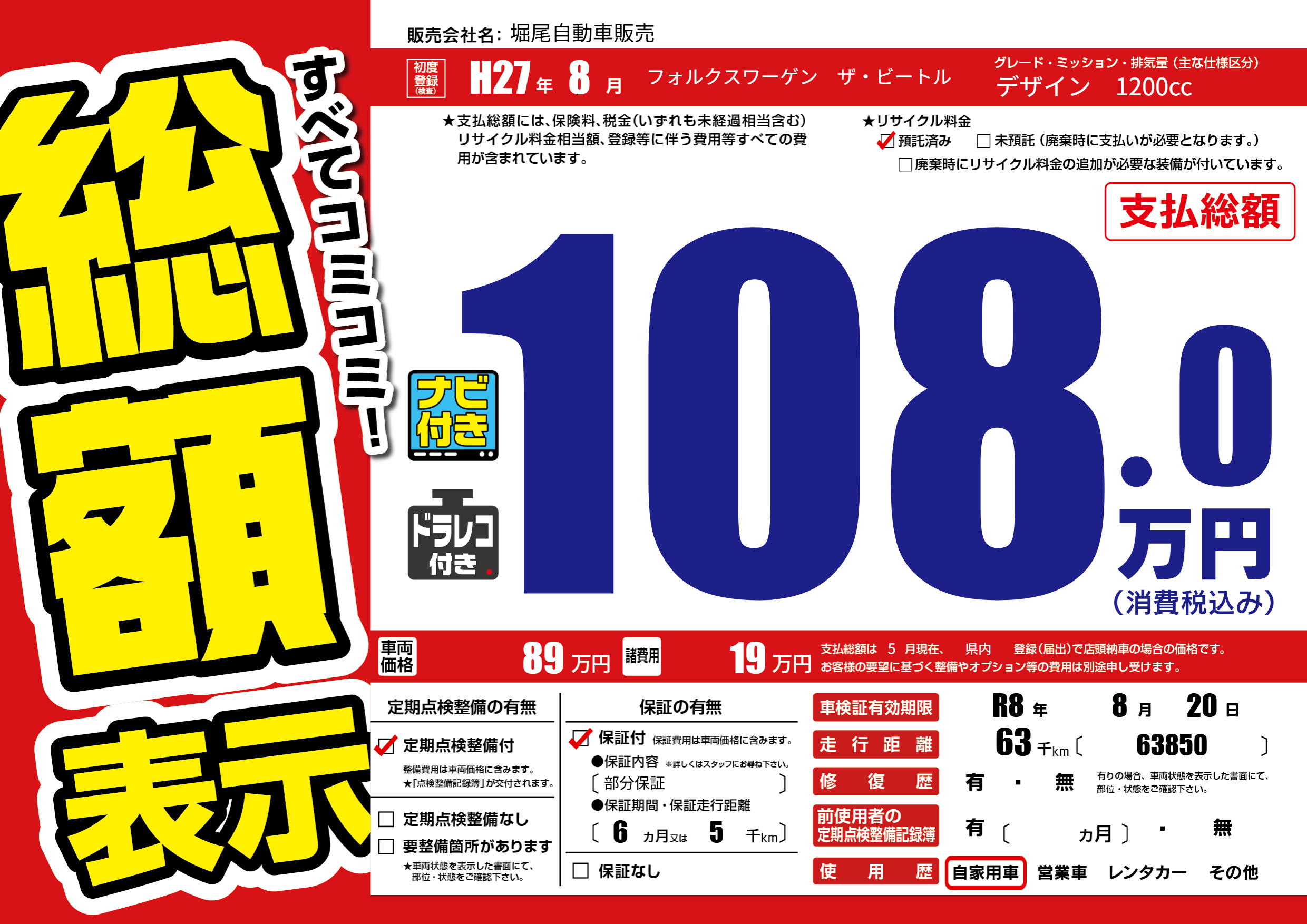 なし | 車検制限 | R8年8月20月 |