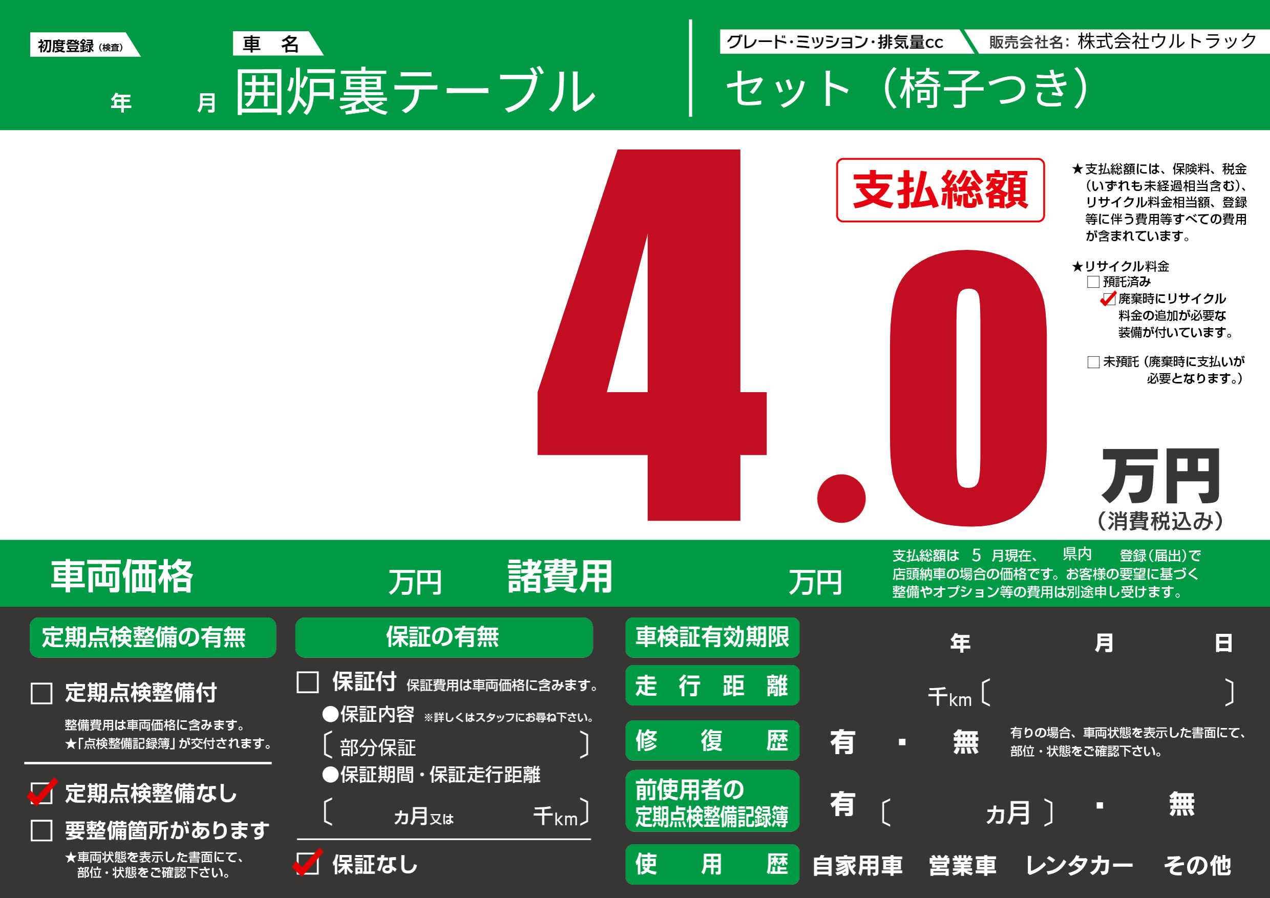 | 車名 | 囲炉裏テーブル | グレード ミッション 排気量 |