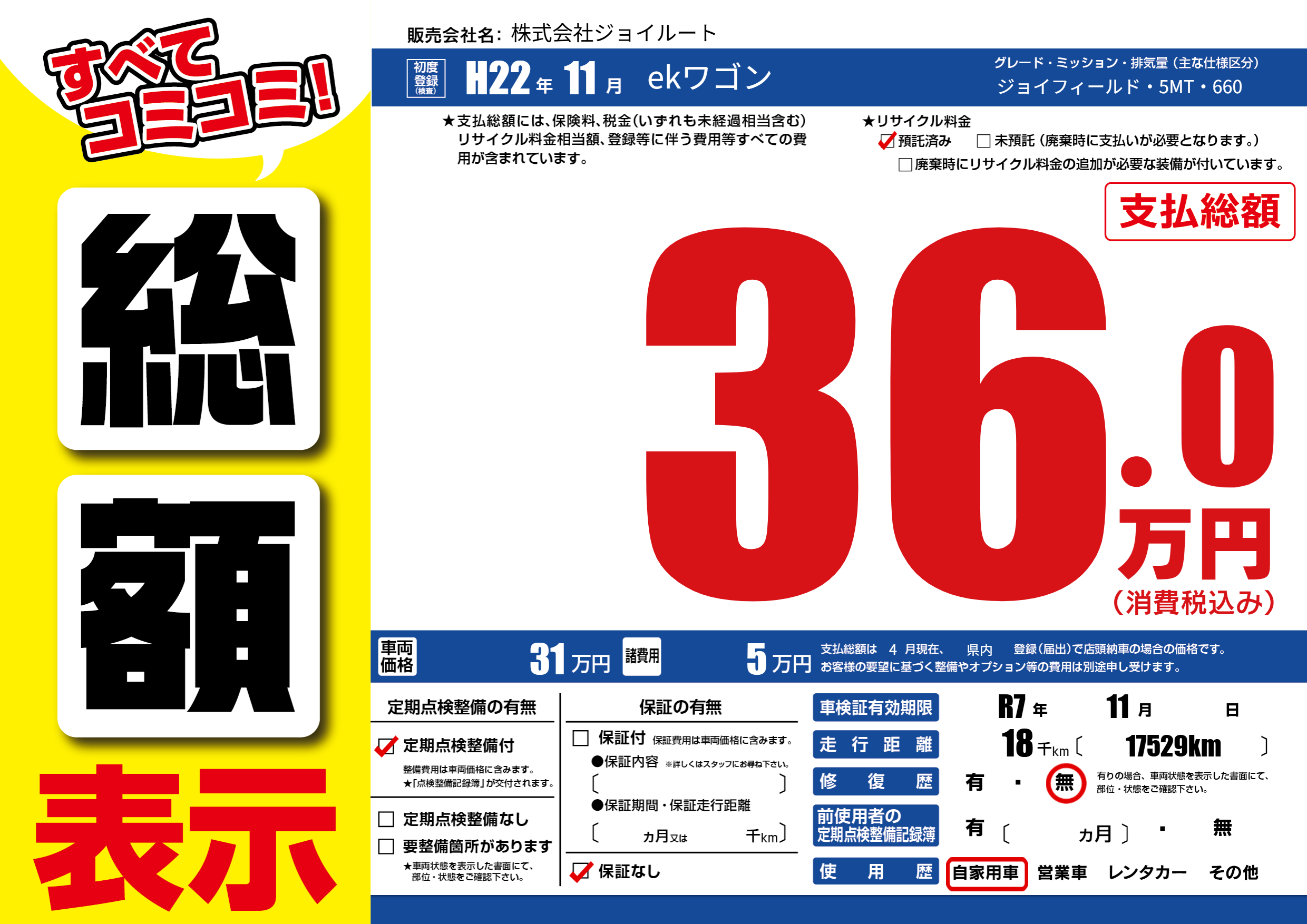 | 車名 | ekワゴン | グレード ミッション 排気量 |