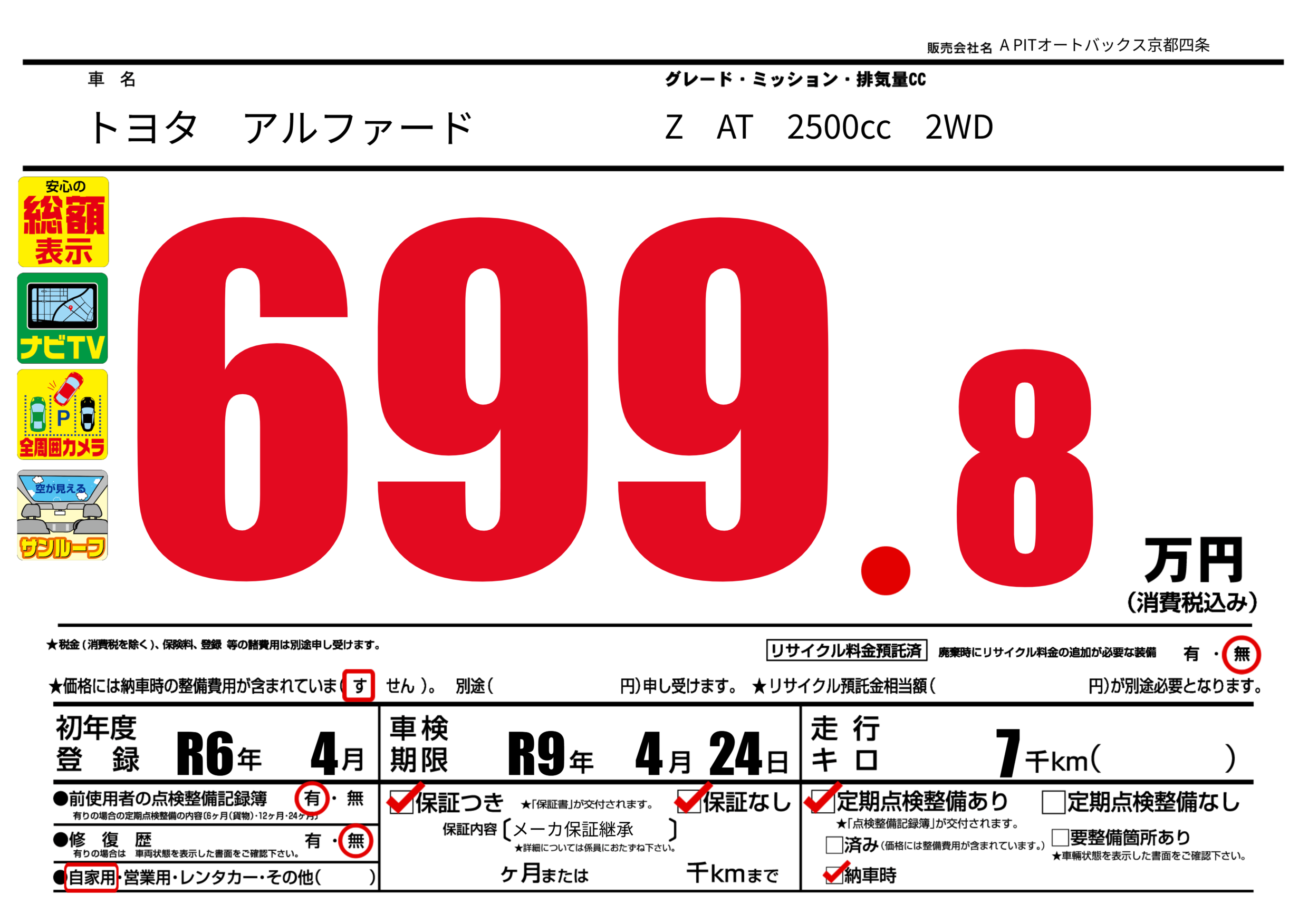 あり | 車検制限 | R9年4月24月 |