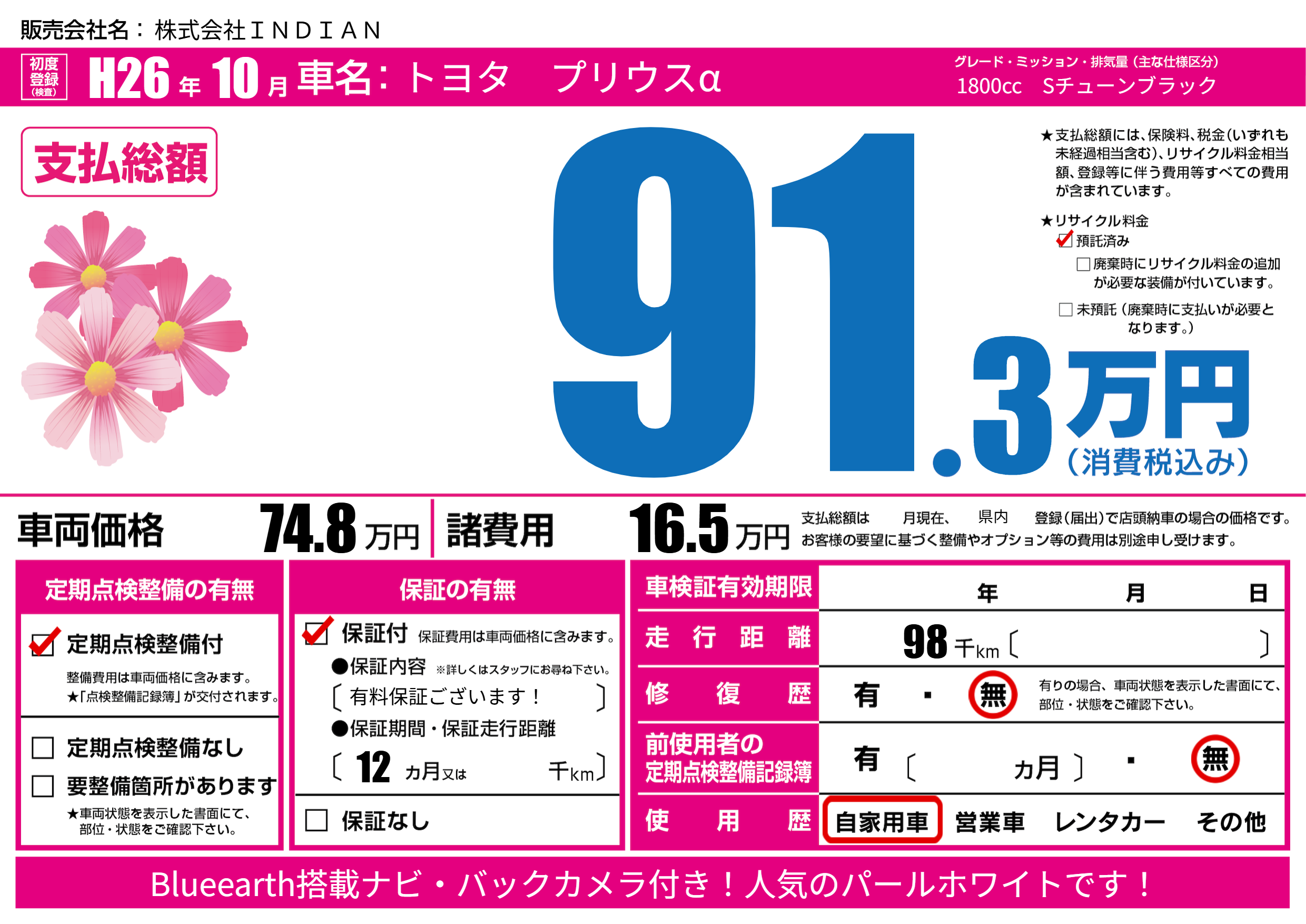 | 走行キロ | 9.8万km | ||
