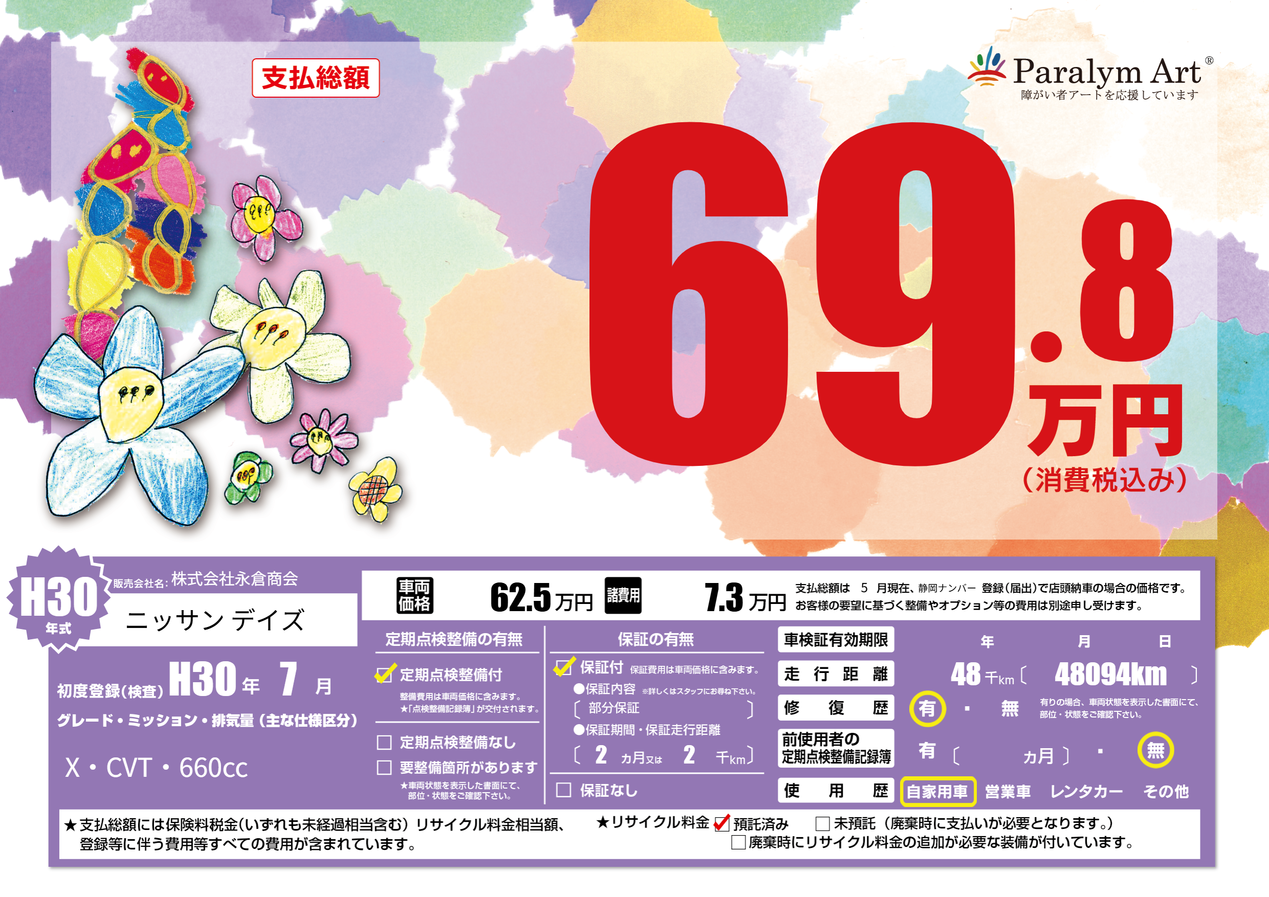 | 車名 | ニッサン デイズ | グレード ミッション 排気量 |