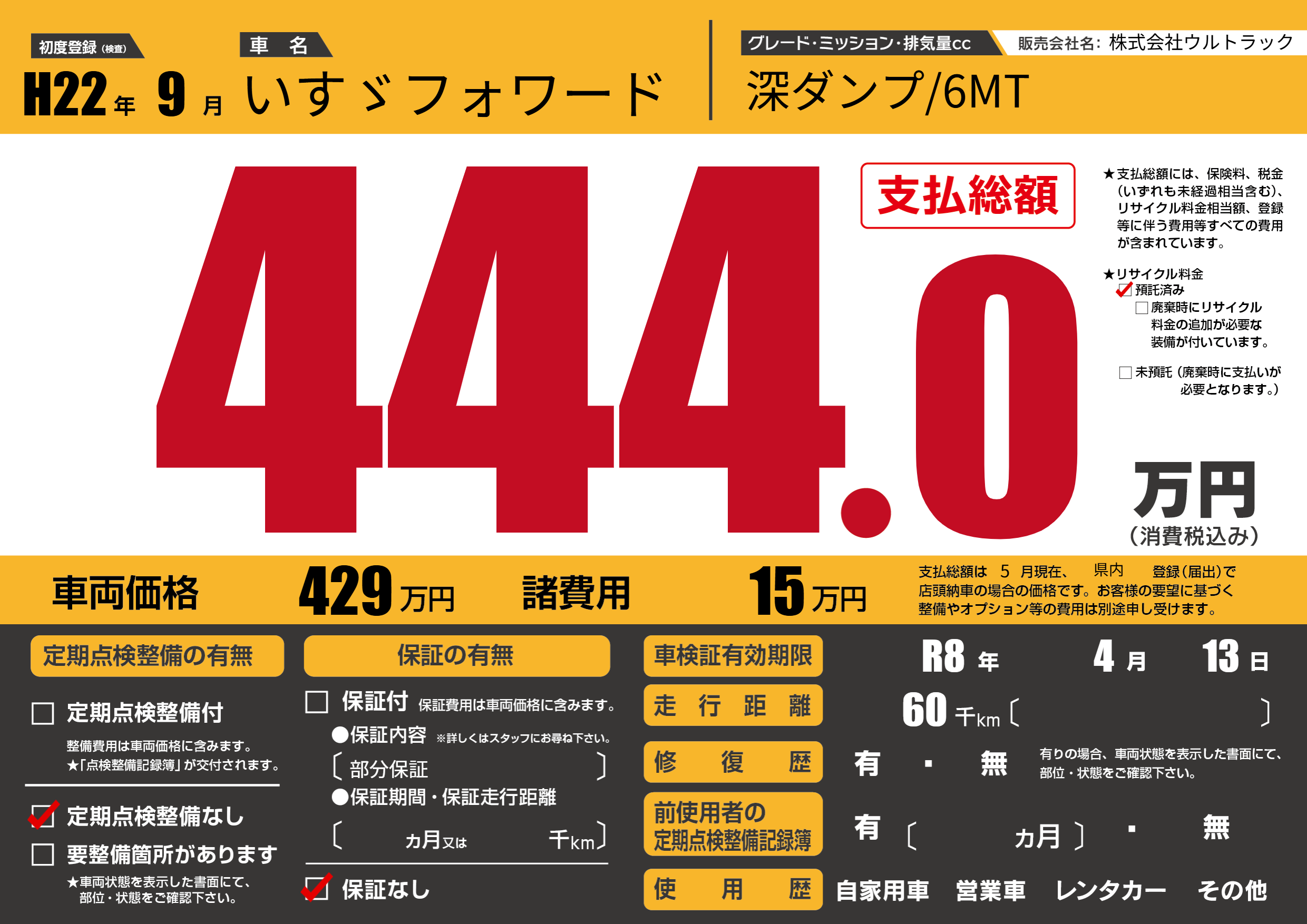なし | 車検制限 | R8年4月13月 |