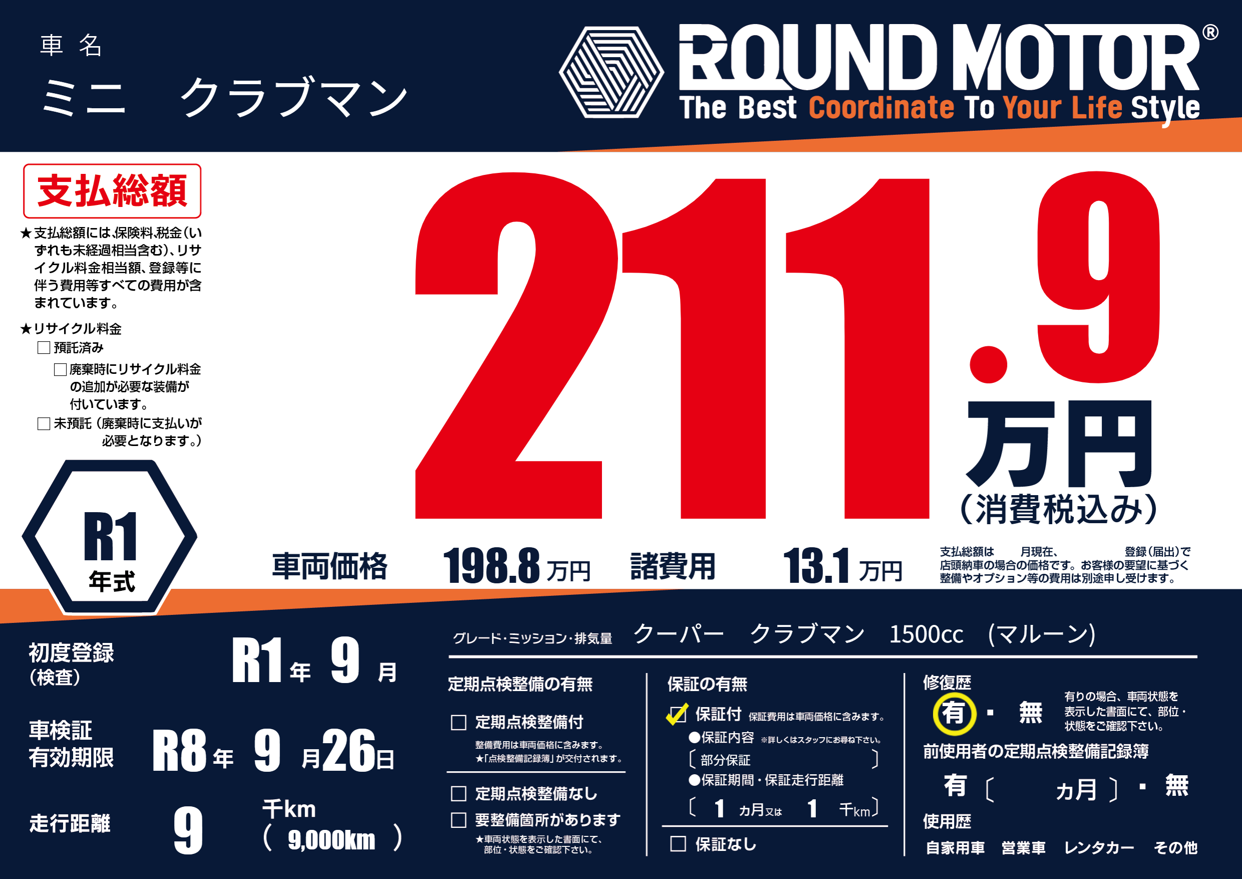 | 車検制限 | R8年 9月 26日 | ||